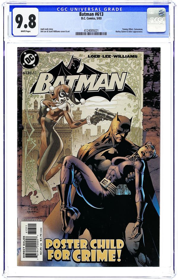 WRITTEN BY JEPH LOEB; ART AND COVER BY JIM LEE AND SCOTT WILLIAMS A new arc of "Hush" begins! A perfect evening out on the town for Bruce and Selina takes a turn for the deadly when Harley Quinn hits Gotham City. And if Harley's back, can the Joker be far behind? Just when you thought Loeb & Lee might have run out of twists, wait until you read the last page! For more information, see the feature article. 44 Pages, Full Color. Cover price $2.25.