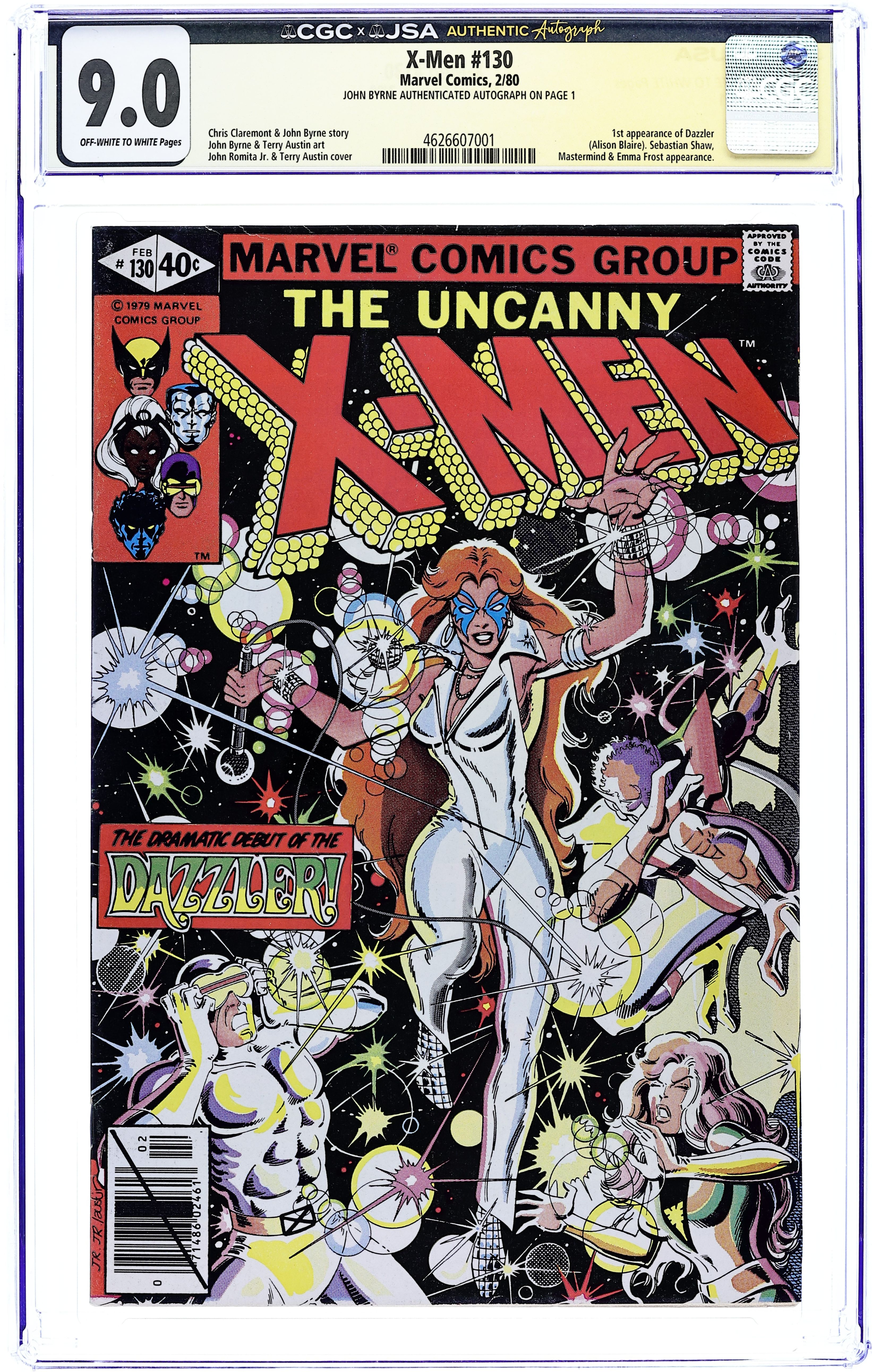 Ends Feb 2 9:57 PM CST Bid History 10 bids Current Bid $125 Your Secret Max Bid If you'd like to bid, please log in or register. Direct Edition. The Dark Phoenix Saga: Part 2 of 9 - "Dazzler!" Story by Chris Claremont and John Byrne. Art by John Byrne and Terry Austin. Wolverine, Colossus, and Storm have been taken captive by the sultry and dangerous White Queen, but for what purpose. Only the young new mutant Kitty Pryde can warn the rest of the team, but will she be in time to save her new friends? Meanwhile, Cyclops and Phoenix encounter another "new mutant" called Dazzler. Plus, Jason Wyngarde continues his mental seduction of Jean Grey. NOTE: 1st appearance of Dazzler. 36 pgs. Cover price $0.40.