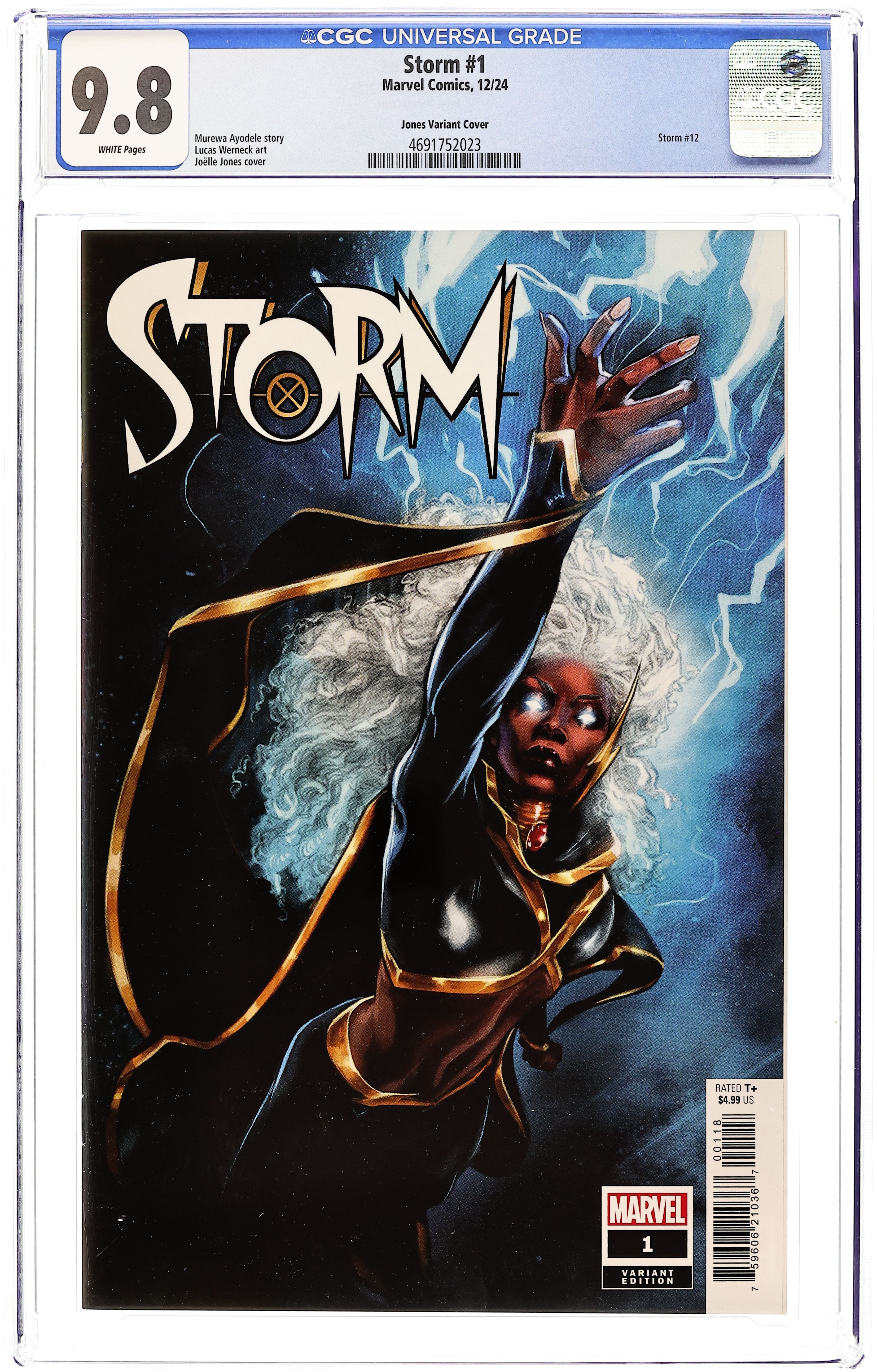 Limited 1 for 50 Retailer Incentive Variant Cover. Written by Murewa Ayodele. Art by Lucas Werneck. Cover by Joelle Jones. EARTHS MIGHTIEST MUTANT, NOW HEADLINING HER OWN SOLO SERIES! Ororo Munroe has lived many lives. Shes been a thief, a goddess, an X-Man, a queen and now an Avenger! She is the most prominent, most respected and most powerful mutant on the world stage – and in that role, she intends to be a force for positive change! First up: A major meltdown at a nuclear facility in Oklahoma City draws Storm from her Sanctuary in Atlanta – and into a moral conflict that will test her iron resolve! Guest-starring X-FACTORs FRENZY! 40 pages, full color. Rated T+ Cover price $4.99.