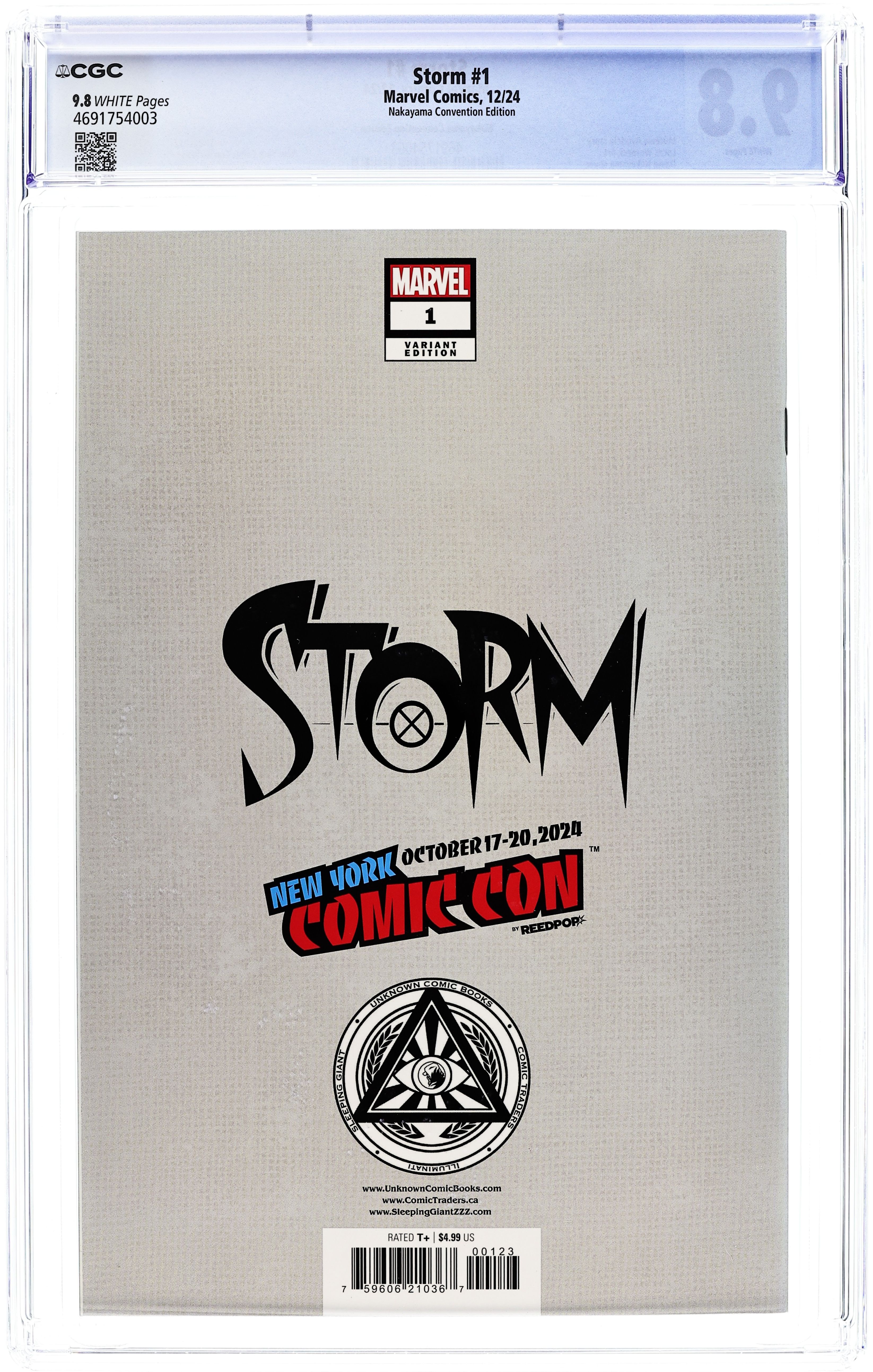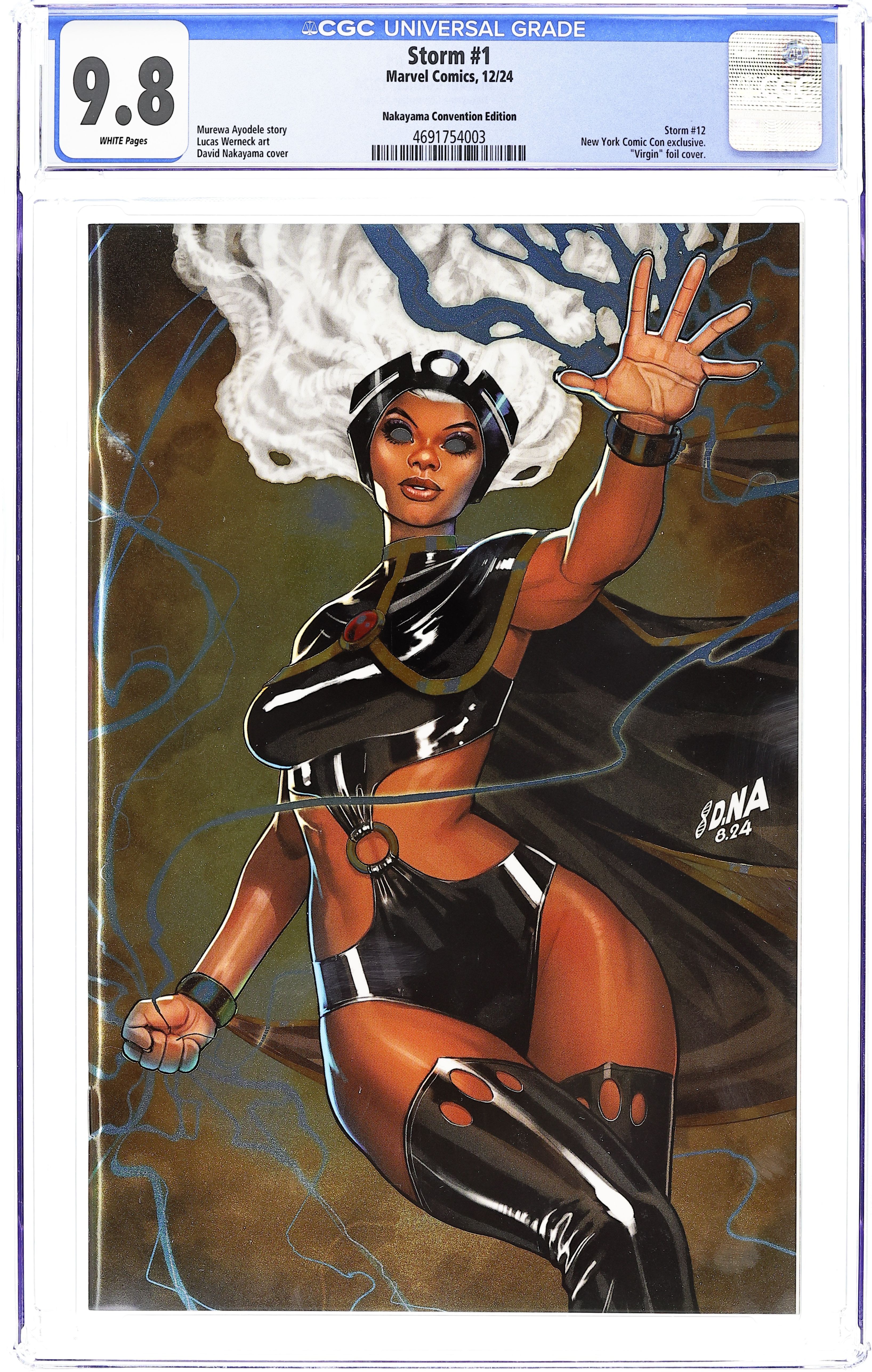 Comics Illuminati (Unknown Comic Books, Comic Traders, and Sleeping Giant) New York Comic Con Exclusive Foil Edition Virgin Cover by David Nakayama. Written by Murewa Ayodele. Art by Lucas Werneck. EARTHS MIGHTIEST MUTANT, NOW HEADLINING HER OWN SOLO SERIES! Ororo Munroe has lived many lives. She's been a thief, a goddess, an X-Man, a queen and now an Avenger! She is the most prominent, most respected and most powerful mutant on the world stage – and in that role, she intends to be a force for positive change! First up: A major meltdown at a nuclear facility in Oklahoma City draws Storm from her Sanctuary in Atlanta – and into a moral conflict that will test her iron resolve! Guest-starring X-FACTORs FRENZY! 40 pages, full color. Rated T+