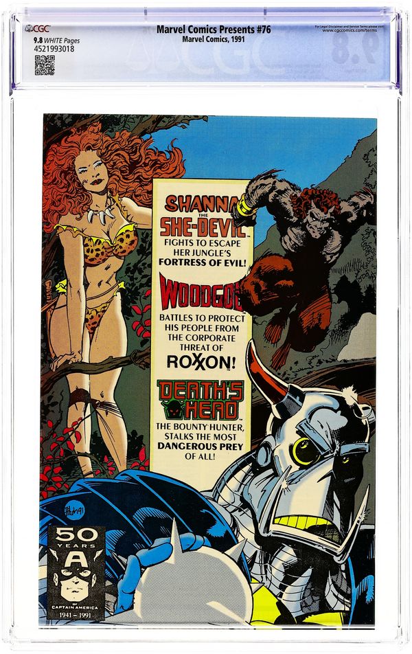 Cover art by Barry Windsor-Smith. Weapon X (chapter 4), script and art by Barry Windsor-Smith. The Living and the Dead (The Bush of Ghosts part 9) starring Shanna the She-Devil, script by Gerard Jones, pencils by Paul Gulacy, inks by Gary Martin. The Deadliest Game starring Death's Head, script by Simon Furman, pencils by Bryan Hitch, inks by Mark Farmer. Lonely At the Top starring Woodgod, script by Robert Campanella, art by Dave Cockrum. Back cover art by Bryan Hitch. 36 pgs. Cover price $1.25.