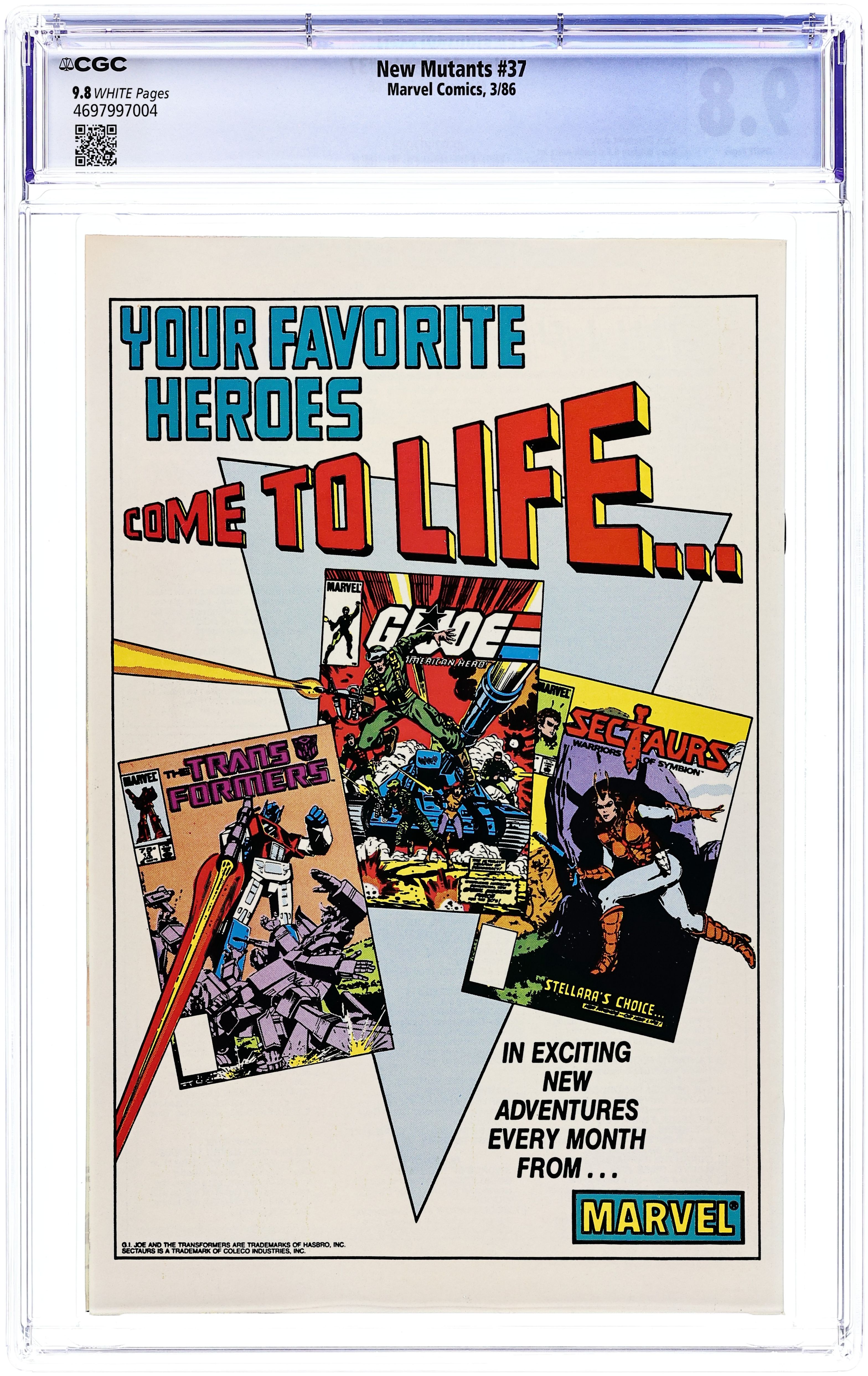 Direct Edition. First 75-cent cover price issue. Secret Wars II crossover. Cover art by Barry Windsor-Smith. Subway to Salvation!, script by Chris Claremont, pencils by Mary Wilshire, inks by Bill Sienkiewicz; The Beyonder pays Magik a visit and offers her salvation; demons from Limbo start popping up all over the place; Shadowcat inherits Magik's Soulsword and armor, but doesn't know how to use them; The New Mutants restore order and rescue Shadowcat. Cont. from Secret Wars II #7. 36 pgs. $0.75. Cover price $0.75.