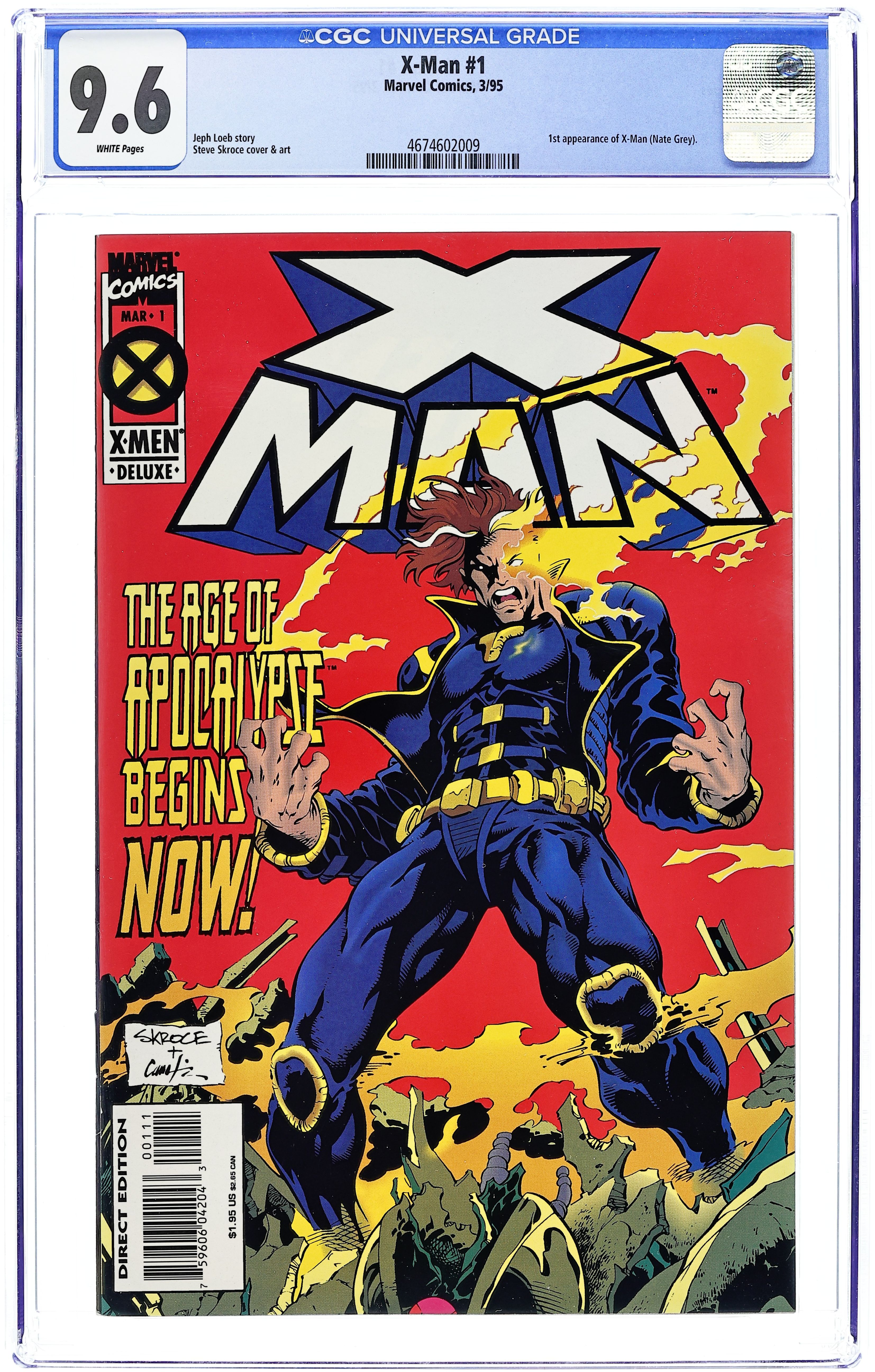 Starts Later today First Printing. Direct Edition. "Age of Apocalypse storyline". This is the first printing with a $3.95 cover price and a chromium cover. Written by Scott Lobdell, art by Cruz, cover by Joe Madureira. Cover price $3.95.