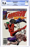 Newsstand Edition. Cover art by Frank Miller. The Widow's Bite, script by Frank Miller, pencils by Frank Miller (layouts) and Klaus Janson (finished art), inks by Klaus Janson; The Widow is dying of poison she got in a fight with the Hand and is desperately trying to find Daredevil to help; Matt is recovering his hyper senses in an isolation chamber under the watchful eye of Stick and his ninja. Frank Miller's splash page for this issue demonstrating the difference between Frank Miller's rough breakdown sketch and Klaus Janson's pencilled art; Replaces letters page. 36 pgs. Cover price $0.60. Cover price $0.60.
