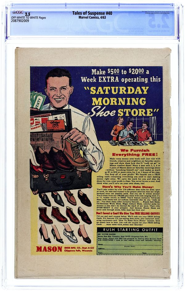 Tags: Marvel Legacy Numbering: Captain America (part 39), Marvel Legacy Numbering: Tales of Suspense (part 39), Iron Man$30,000- Paper: Off white