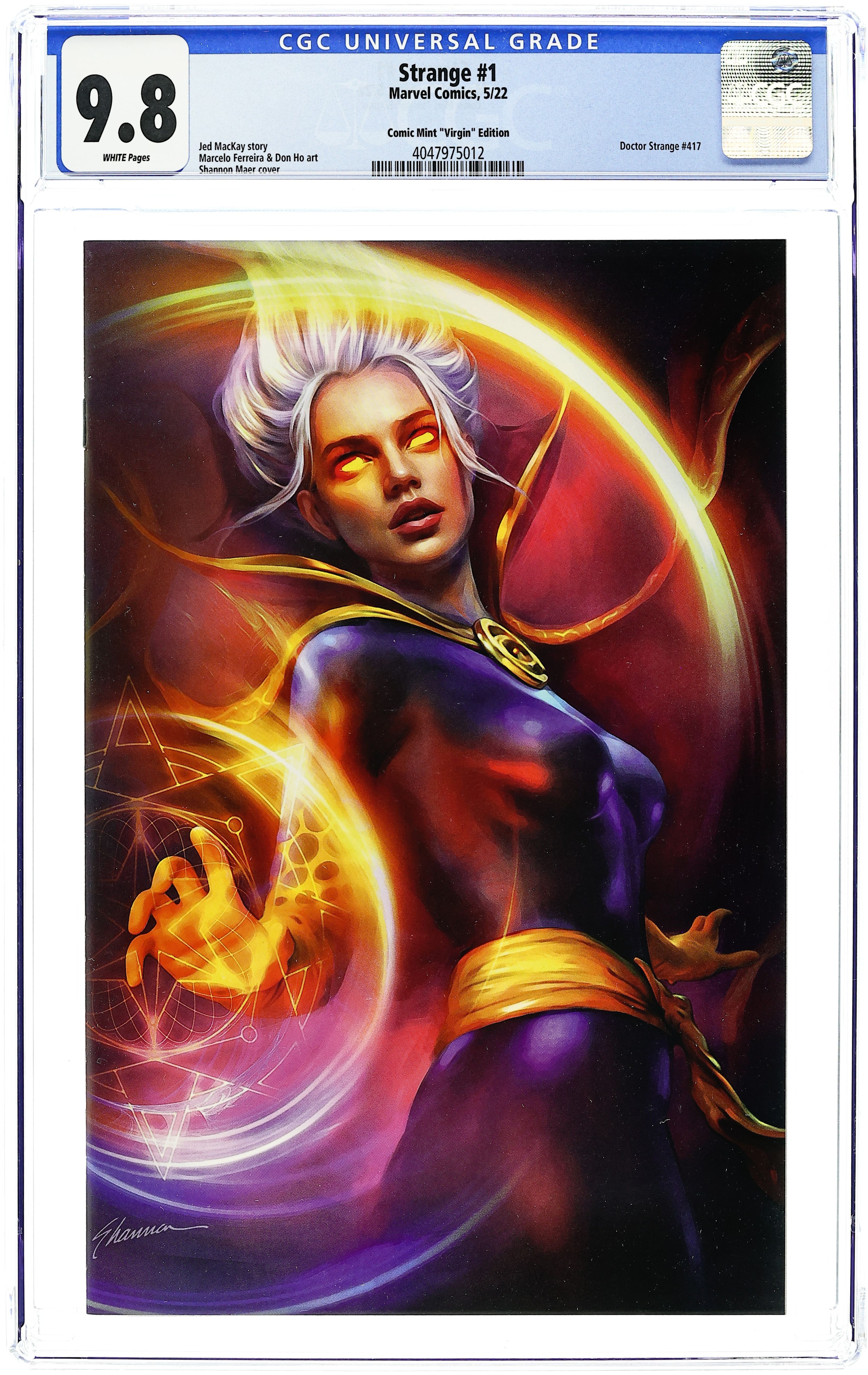 Comic Mint Exclusive Virgin Cover by Shannon Maer - limited to 800 copies. Written by Jed MacKay. Art by Marcelo Ferreira. A NEW SORCERER SUPREME RISES! Doctor Strange is dead! And a new Sorcerer Supreme has taken the title, or should we say Sorceress? Haunted by her recently returned memories, Clea longs to bring Stephen Strange back from the dead! But when a mysterious group attacks the magical realm, Clea must rise to the duties of Sorcerer Supreme. For she is now the sole protector of Earth against magical threats. Don't miss the twists and turns as Jed MacKay continues the story from DEATH OF DOCTOR STRANGE with artist Marcelo Ferreira (THE AMAZING SPIDER-MAN)! 36 pages, full color. Rated T+ Cover price $4.99.