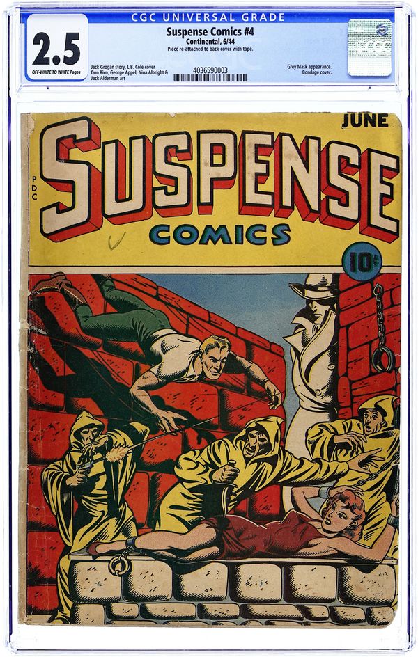 Cover art by L. B. Cole. The Devil to Pay starring Grey Mask, art by Don Rico. Tombstone. Invitation to Horror, art by Jack Alderman. Morning on the Moor text story. Murder Will Out text story. Adventure Into Yesterday, art by L. B. Cole. Worthless Wiggins story, art by Wes Morris [as Wes Sirrom]. A Parisian Nightmare. The Roads We Take, art by G. H. Appel. 52 pgs. $0.10. Cover price $0.10.