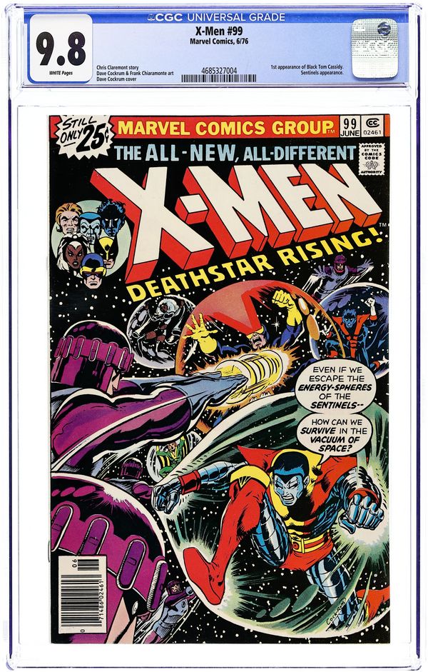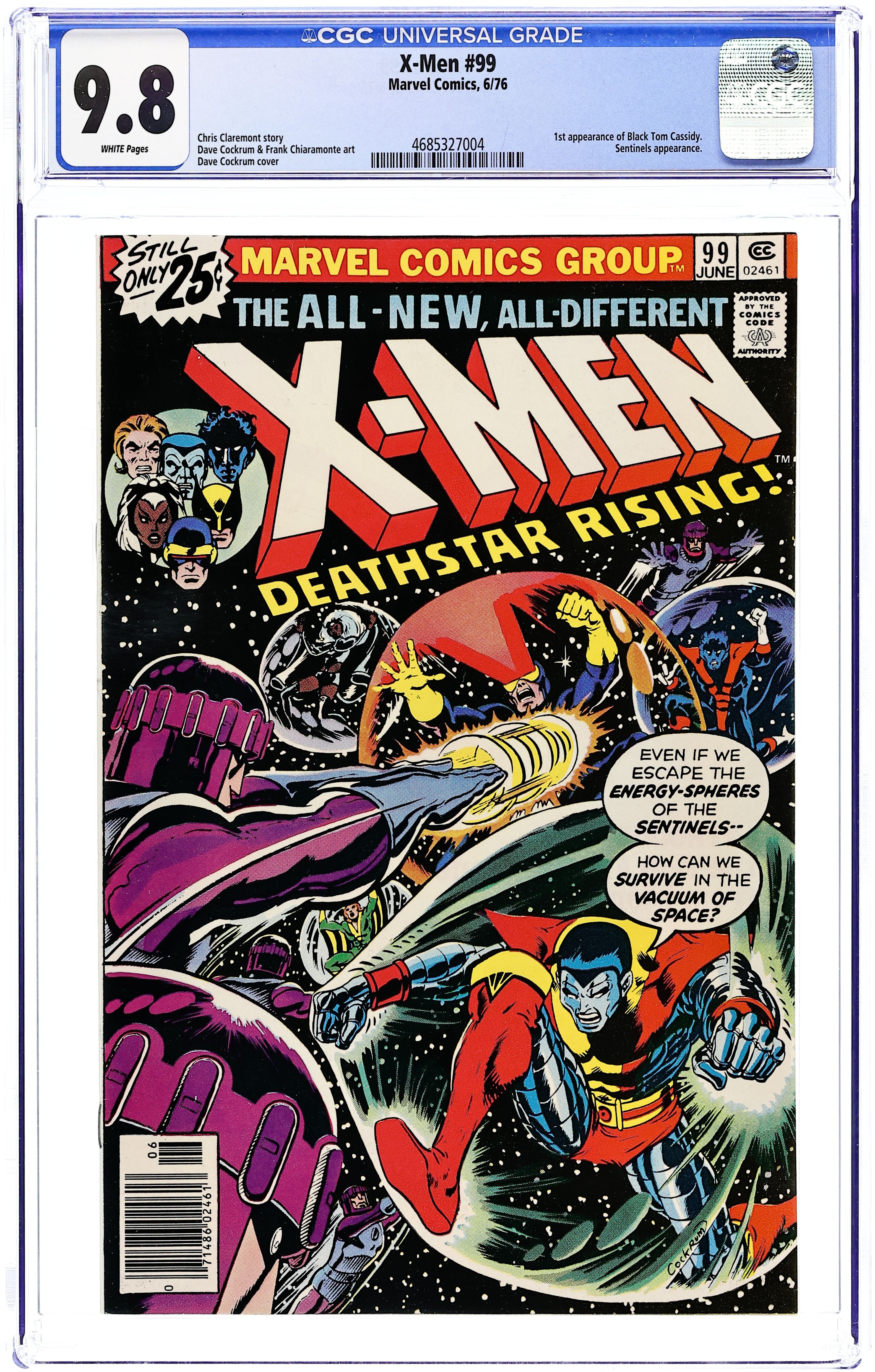 "Deathstar, Rising!" Part 2 of 3. Story by Chris Claremont. Art by Dave Cockrum and Frank Chiaramonte. The new X-Men boldly go where no X-Men have gone before as their battle with the mutant hating Sentinels takes to the edge of space and beyond. But before they can stop the madman Steve Lang, the X-Men will come face-to-face with the last people they expected to see! 36 pgs. Cover price $0.25.