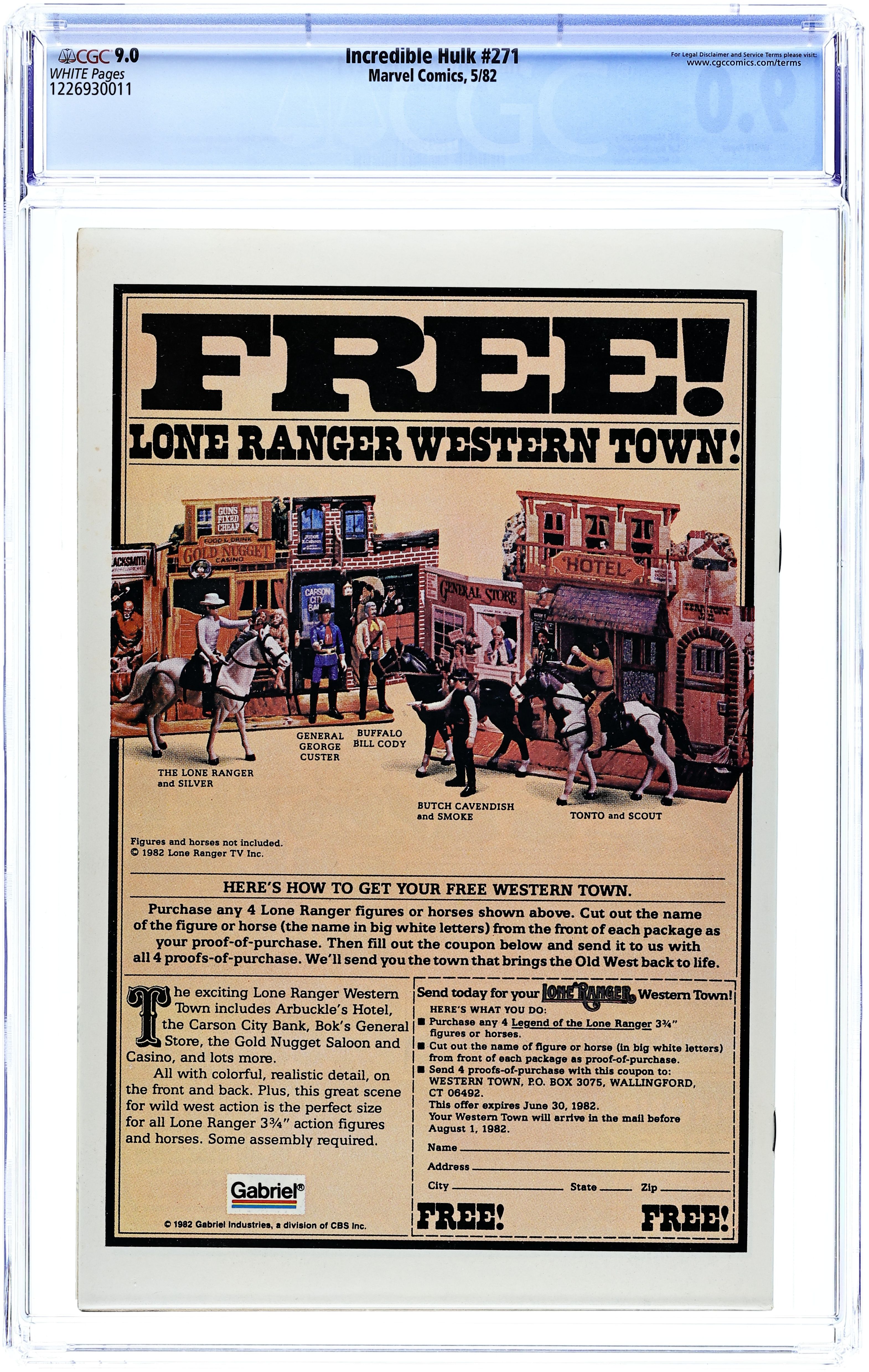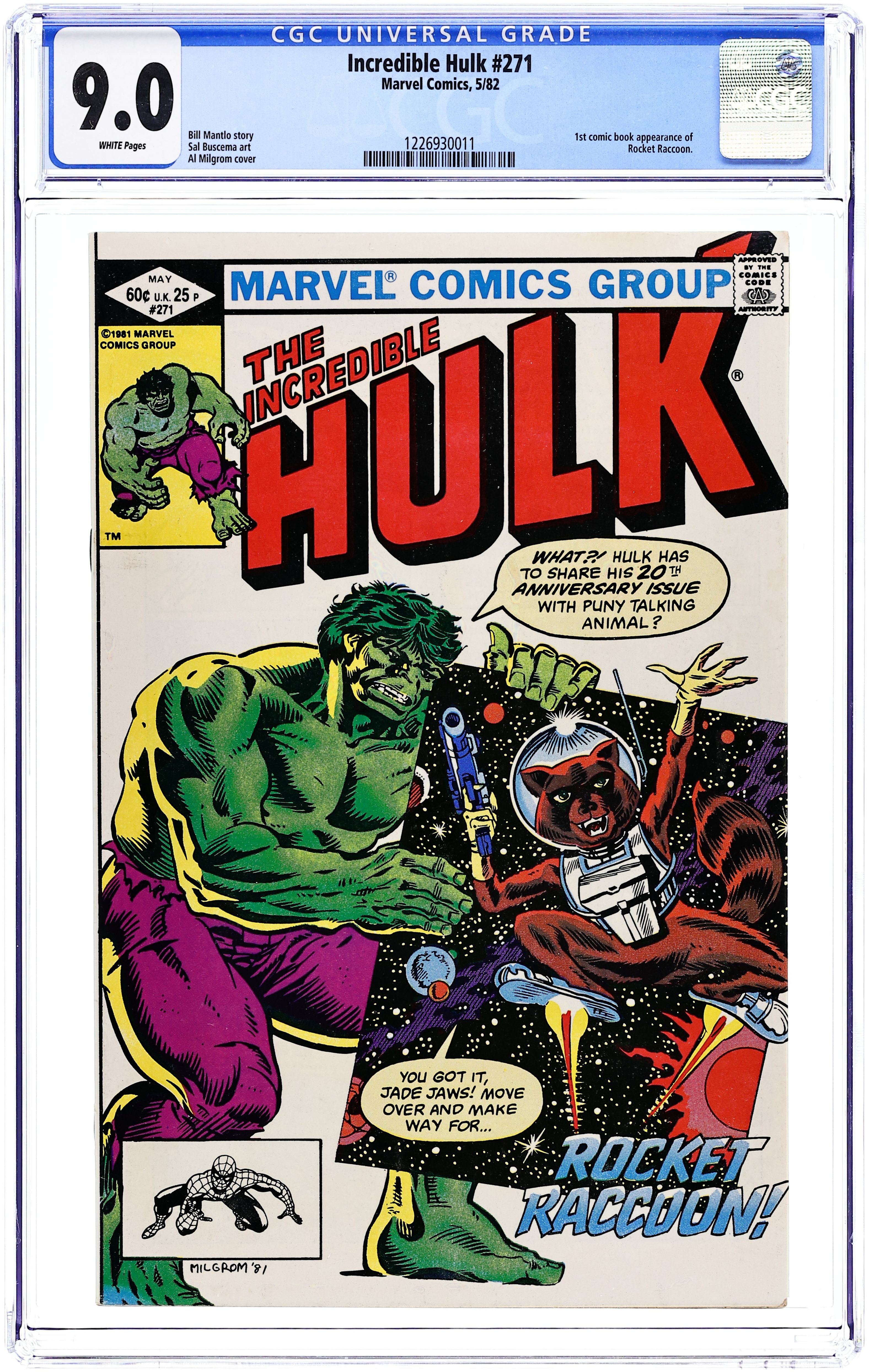 Direct Edition. 2nd appearance of Rocket Raccoon (see Marvel Preview #7 for 1st appearance). Story by Bill Mantlo. Art by Sal Buscema. The Hulk celebrates his 20th Anniversary with one of the most offbeat stories of all. Following the events of last issue, Hulk hurtles through the void only to run into the marvelous Rocket Raccoon and his band of colorful friends. Can the Hulk aid Rocket and his crew against the machiavellian Judson Jakes and his sinister scientist, the tortoise Uncle Pyko? 36 pages. Cover price $0.60.