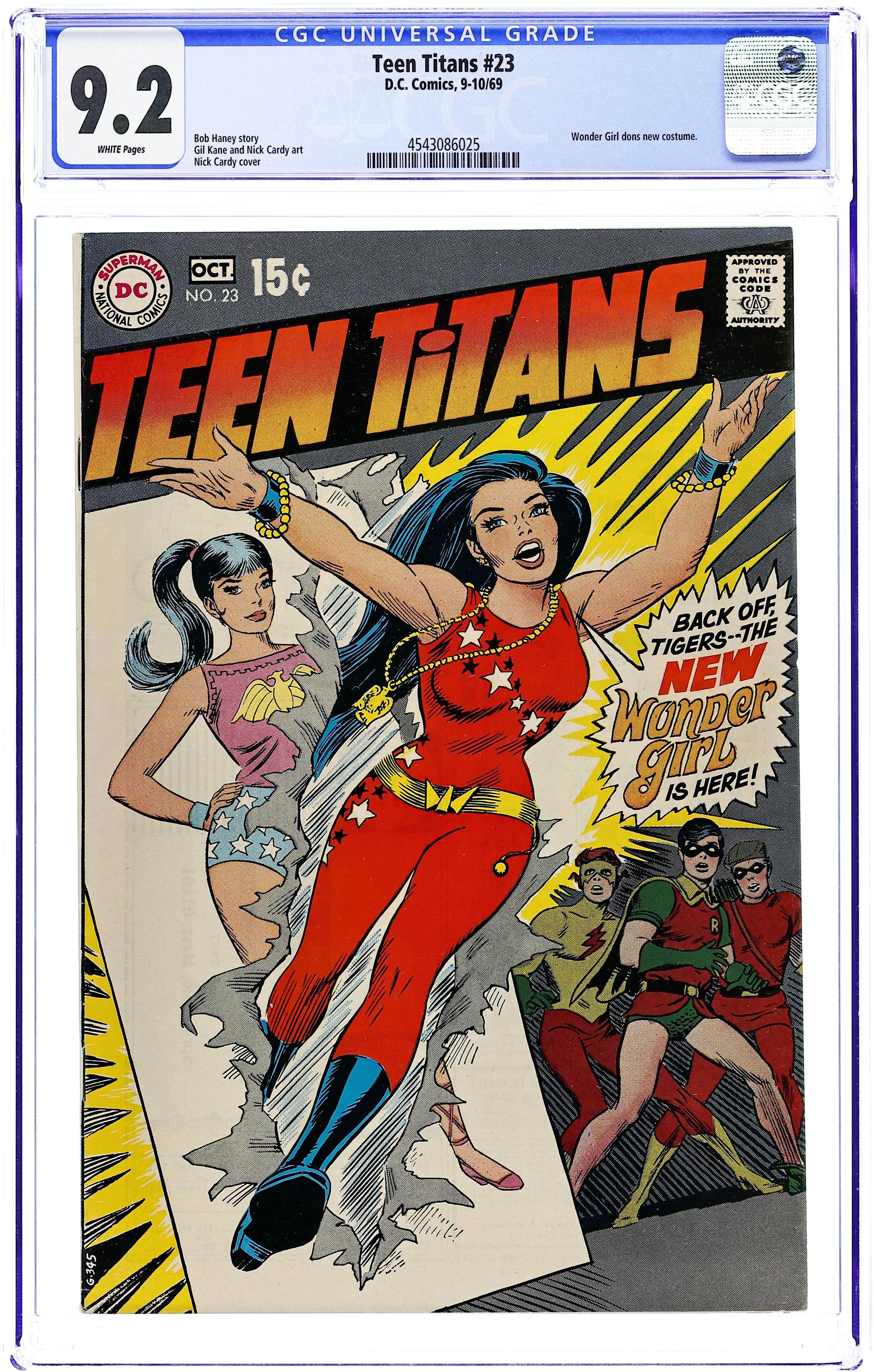 Direct Edition. First appearance of Deathstroke the Terminator in "Today...the Terminator!" Characters: Teen Titans [Robin; Kid Flash; Wonder Girl; Cyborg; Starfire; Raven; Changeling]; The Terminator [Slade Wilson] (1st; Later Deathstroke); The Ravager [Grant Wilson] (Intro; Death); Wintergreen (Intro); HIVE. Script by Marv Wolfman, with art by George Perez and Romeo Tanghal. Plus: an article by Marv Wolfman on the revival of the Teen Titans. Cover by George Perez. Cover price $0.50.