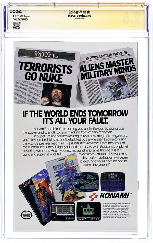 Direct Edition. 80-page giant 30th Anniversary issue, with the first appearance of Spider-Man 2099! The Lizard returns in "Fathers and Sins." Script by David Michelinie, pencils by Mark Bagley, inks by Randy Emberlin. J. Jonah Jameson is featured in "How I Created Spider-Man!" Script by David Michelinie, art by Aaron Lopresti. Gwen Stacy takes center stage in "I Remember Gwen." Script by Stan Lee, plot by Tom DeFalco, art by John Romita Sr. (Cameos by the Green Goblin and Doctor Octopus.) The Prowler is also here in "A Friend in Need." Script by Tom DeFalco, pencils by Tod Smith, inks by Andrew Pepoy. There are also two text pieces, "The Saga of Spidey's Parents" by Stan Lee, and "Spider-Man: The First Thirty Years" by Peter Sanderson. Spider-Man 2099 gets a sneak preview, with a script by Peter David, pencils by Rick Leonardi, and inks by Al Williamson. This issue was originally released with a fold-out poster of Spidey versus Venom and Carnage (poster may be missing in lower grades). 84 pgs. Cover price $3.95.