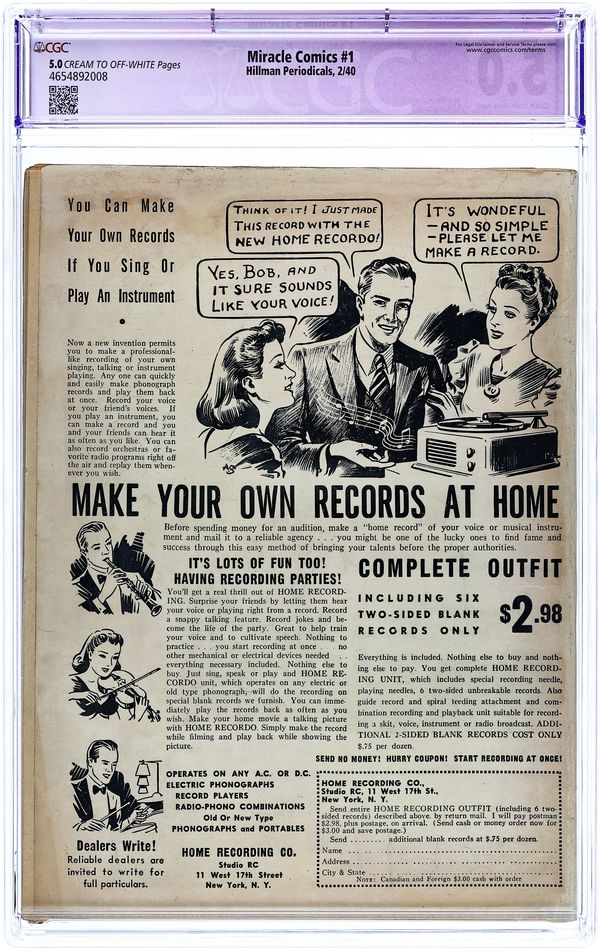 Published Jan 1939 by Centaur Comics.$1,620.00- Paper: Light tan to off white