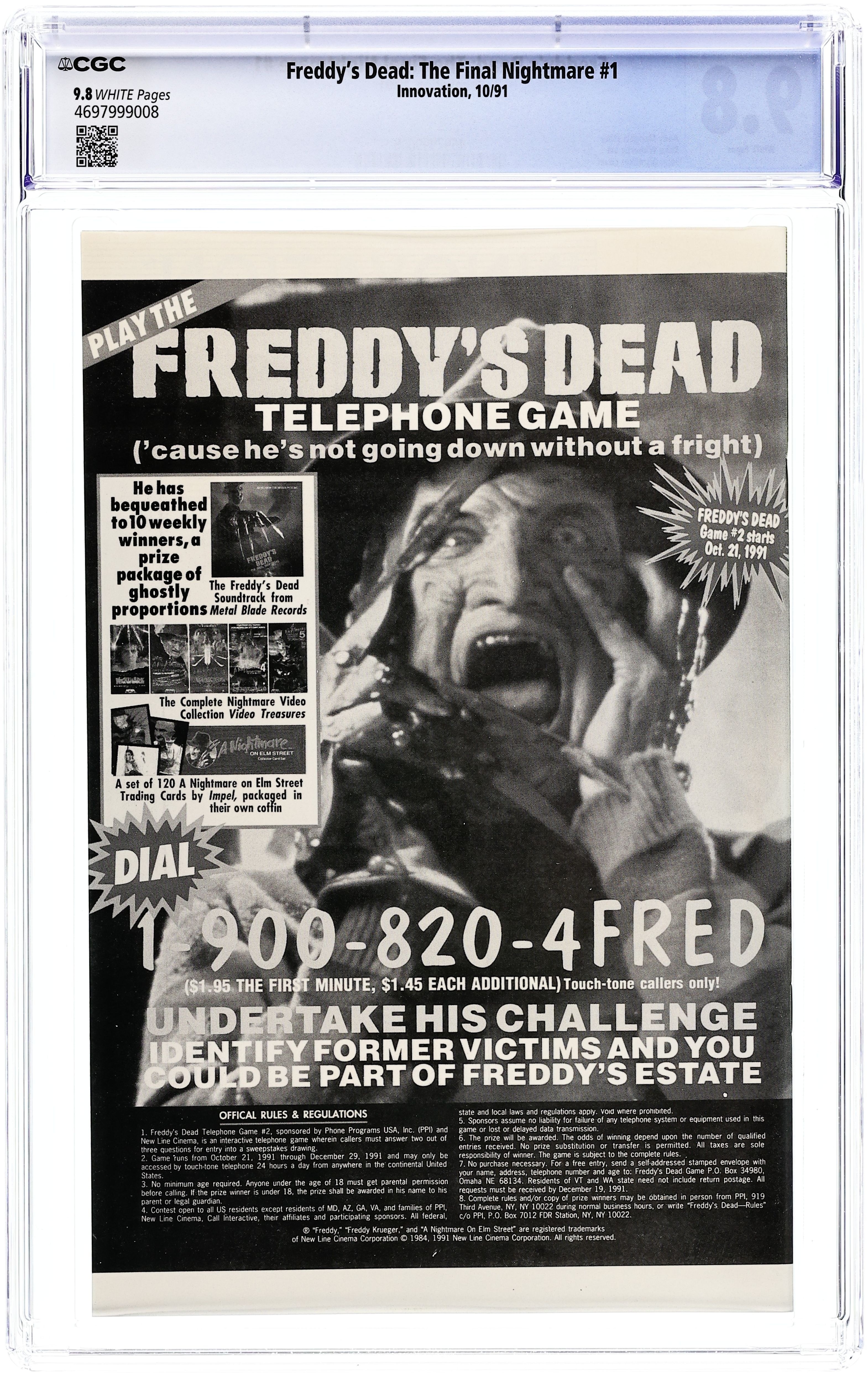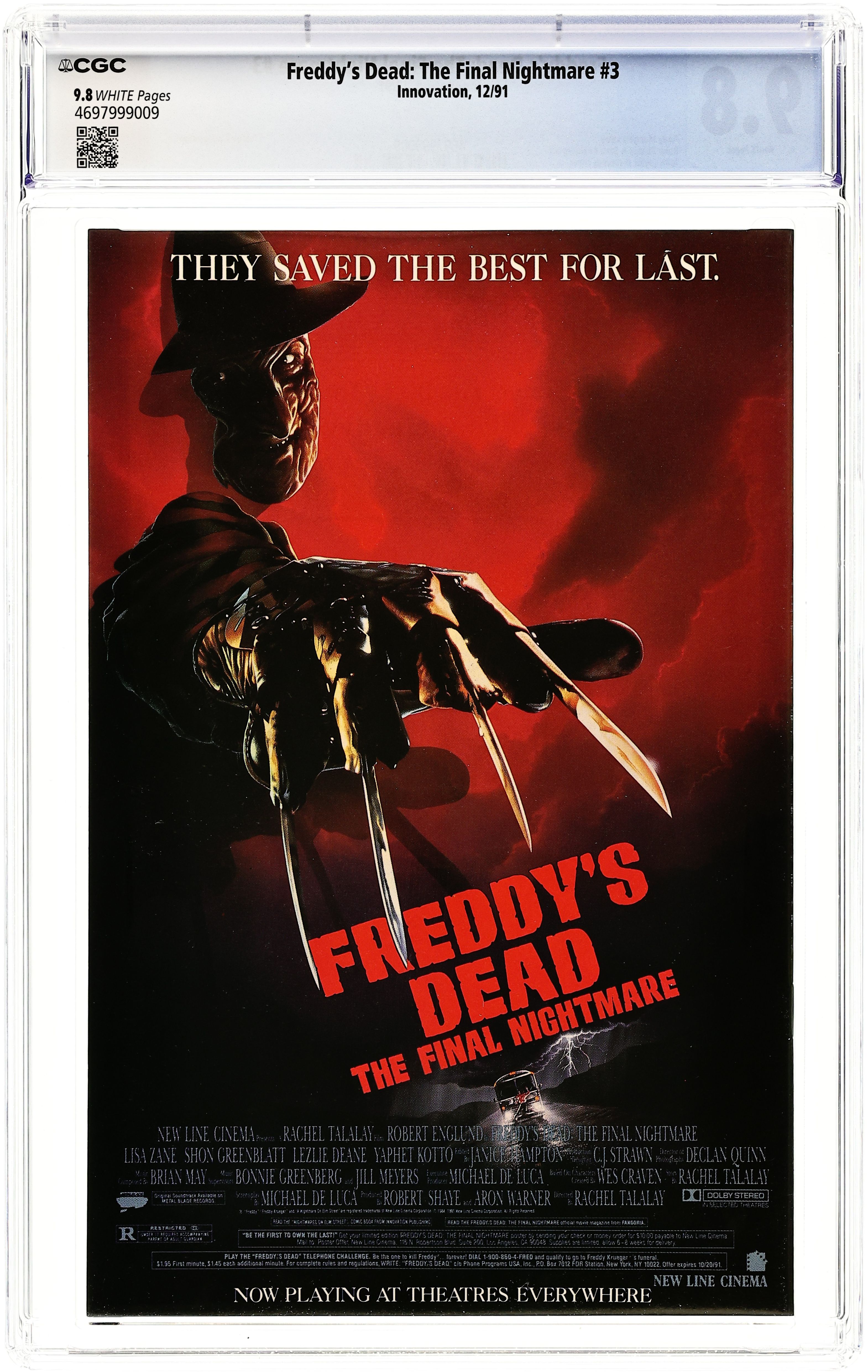 Published Dec 1991 by Innovation.Freddy's Dead The Final Nightmare (1991) 3 CGC 9.6