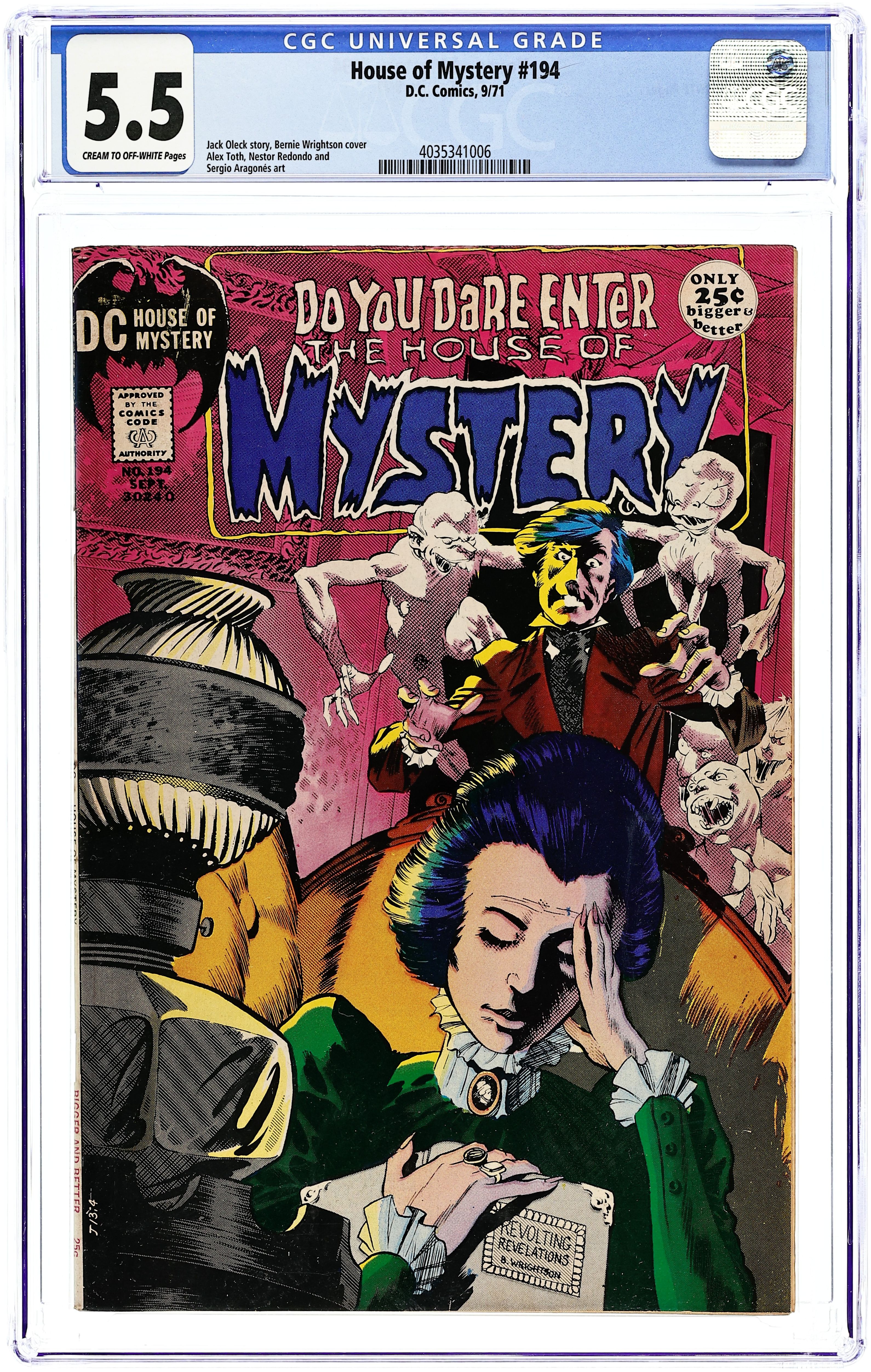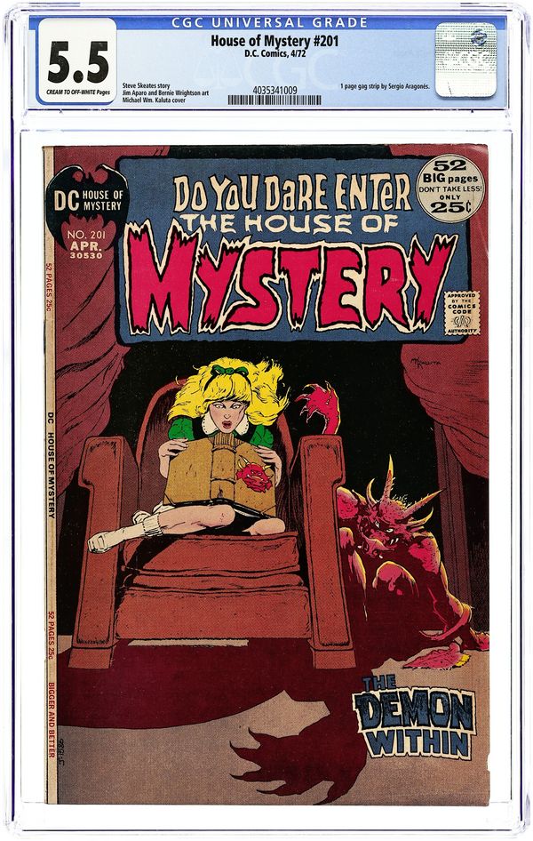 House of Mystery (1951), Jim Aparo and Gray Morrow art, is a comic book published by DC Comics. 32 pages, full color, 7-in. x 10-in., newsprint, with a $0.15 cover price. 36 Pages, Full Color. Cover price $0.15.