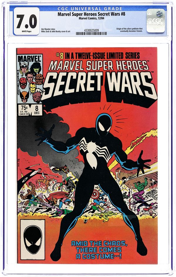 Direct Edition. "Til Death Do Us Part!" Story by Louise Simonson. Art by Greg LaRocque and Jim Mooney. Painted cover by Charles Vess. The alien symbiote (aka black costume) ambushes Peter Parker while he is getting dressed. Now Spider-Man must battle the black costume and the new Vulturions on his way to the Baxter Building! Meanwhile, Aunt May laments Peter's decision to drop out of graduate school. (Note: The Web of Spiderman series essentially replaced the Marvel Team-Up title as Marvel's third regular series featuring Spider-Man.) 32 pages Cover price $0.65.