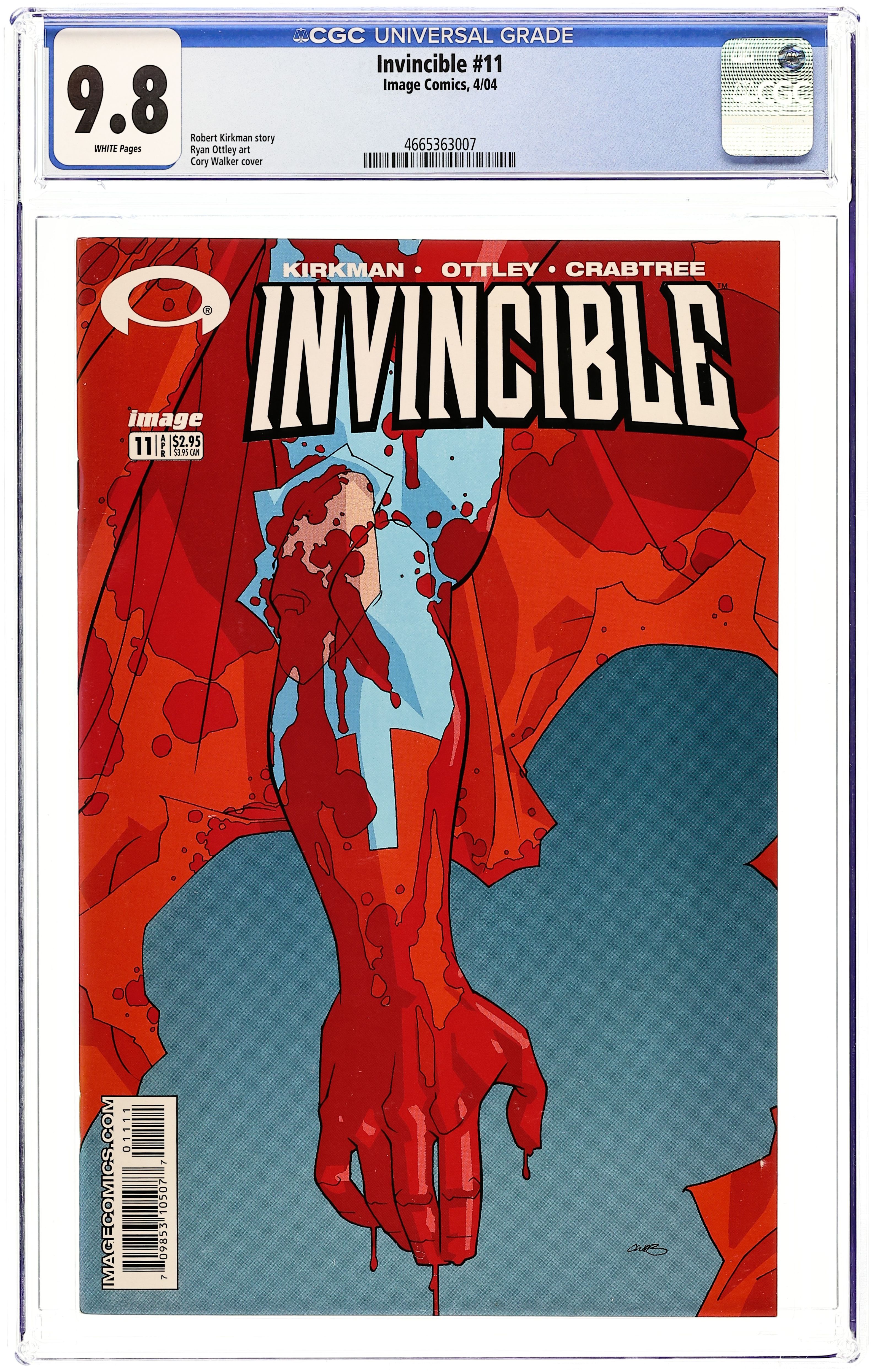 Written by ROBERT KIRKMAN. Art & cover by RYAN OTTLEY & BILL CRABTREE. The Re-animen strike! After months of careful planning and preparation D.A. Sinclair unleashes his undead automations on Upstate University. Luckily, a young man named Mark Grayson just happens to be attending classes there. He'll be able to do something to stop them - he's INVINCIBLE! 32 PAGES FC Cover price $2.99.