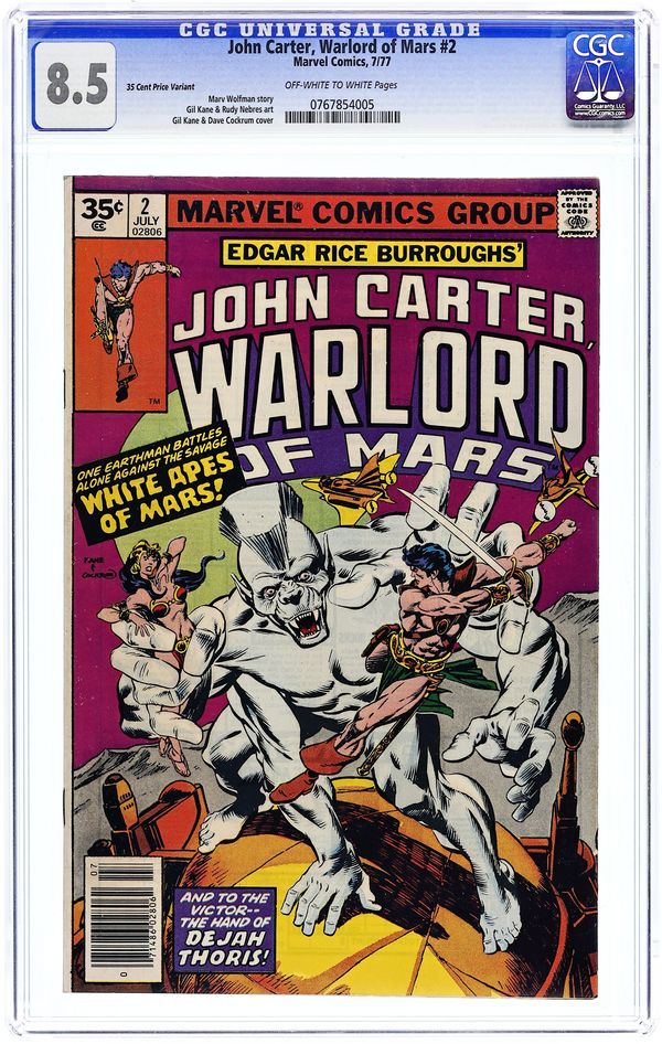 Limited Distribution 35 Cent Price Variant. "Air Pirates of Mars, Part 2: From the Shadows... Stara Kan." John Carter battles the White Apes. Stara Kan flees to the Atmosphere Factory after escaping Helium. Script by Marv Wolfman, pencils by Gil Kane, inks by Rudy Nebres. Cover by Kane and Cockrum. Cover price $0.35.