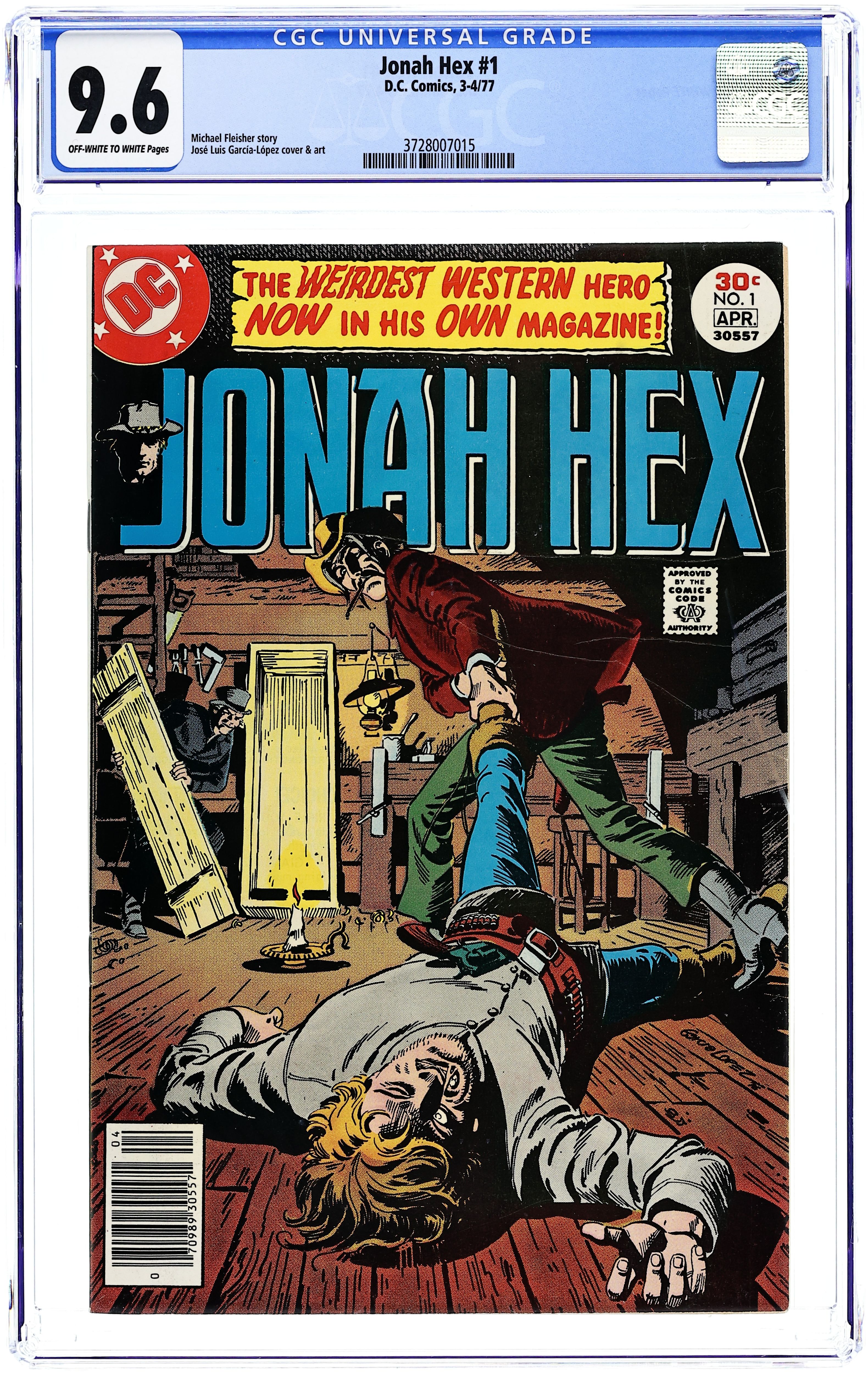 Vengeance for a Fallen Gladiator! - Written by Michael Fleisher. Art and Cover by JosĂ© Luis GarcĂa-LĂłpez. The weirdest western hero now in his own magazine! Plus: Aquaman in 1-page Hostess Twinkies ad "That Dirty Beach" with pencils by Curt Swan; 1-page "And Now...We Interrupt This Comic to Bring You a Word from Your New Publisher..." by Jenette Kahn with art by Neal Adams; and Superman in 1-page public service announcement "Justice for All Includes Children #9" with pencils by Curt Swan. 32 pages, full color. Cover price $0.30.