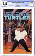 Direct Edition. "Moon Eyes Saga, Chapter 2: The Howling of Distant Tomorrows" - Written by J.D. Vollman. Art by Chris Allan and Brian Thomas. Cover pencils by Chris Allan. Unfortunately, in the Turtles' quest to help the wolf people, Ninjara gets shot! Also, the backup series continues as Inky the dog and a pack of wolves set out to free the alpha female! Story by Eric Talbot, art by Jim Lawson. 32 pages, full color. Cover price $1.50.