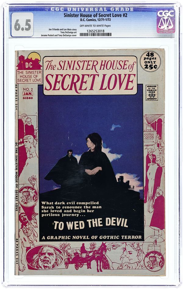 Painted cover art by Jerome Podwil, border cover art by Tony DeZuniga. To Wed the Devil, script by Joe Orlando (plot) and Len Wein (script), art by Tony DeZuniga; Mistress Sarah's father forces her to leave her true love and marry a man whom he owes a lot of money; Sarah's true love rescues here from her demon worshipping husband. 52 pgs. $0.25. Cover price $0.25.