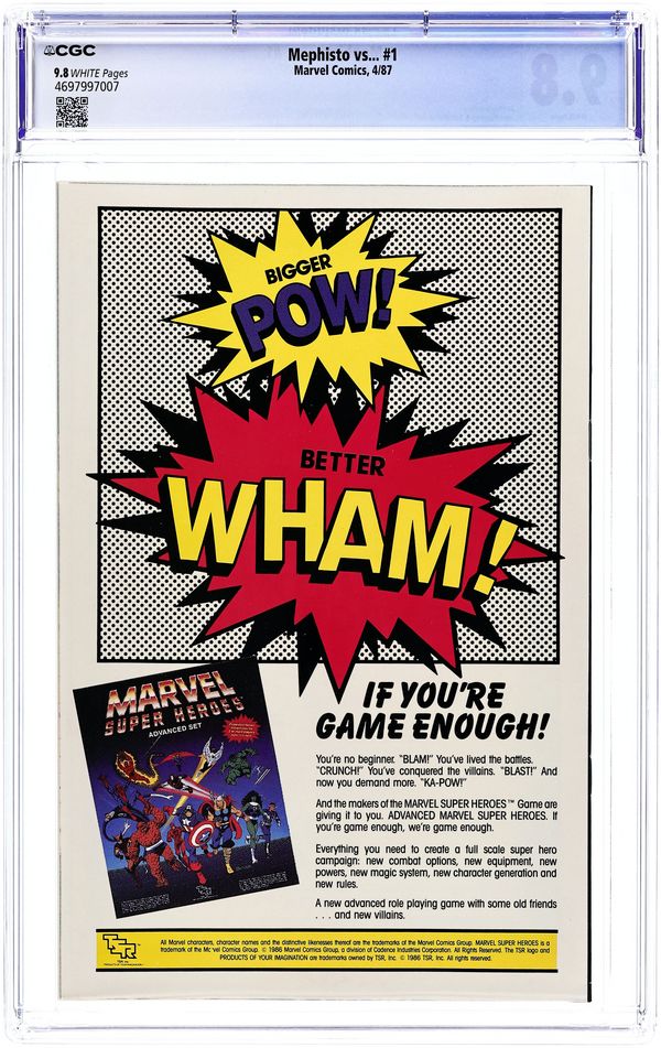 Mephisto vs. the Fantastic Four - "Give the Devil his Due!" Story by Al Milgrom. Art by John Buscema and Bob Wiacek. No being in the Marvel Universe personifies evil more than the malevolent lord of the underworld - Mephisto. This sinister demon sets out on a machiavellian quest that will set him against some of the Marvel U's bravest and brightest heroes. First up - the Fantastic Four. Can Mephisto accomplish what Doctor Doom, Diablo, and Annihilus could not? Can he tear apart Marvel's First Family? Cover price $1.50.