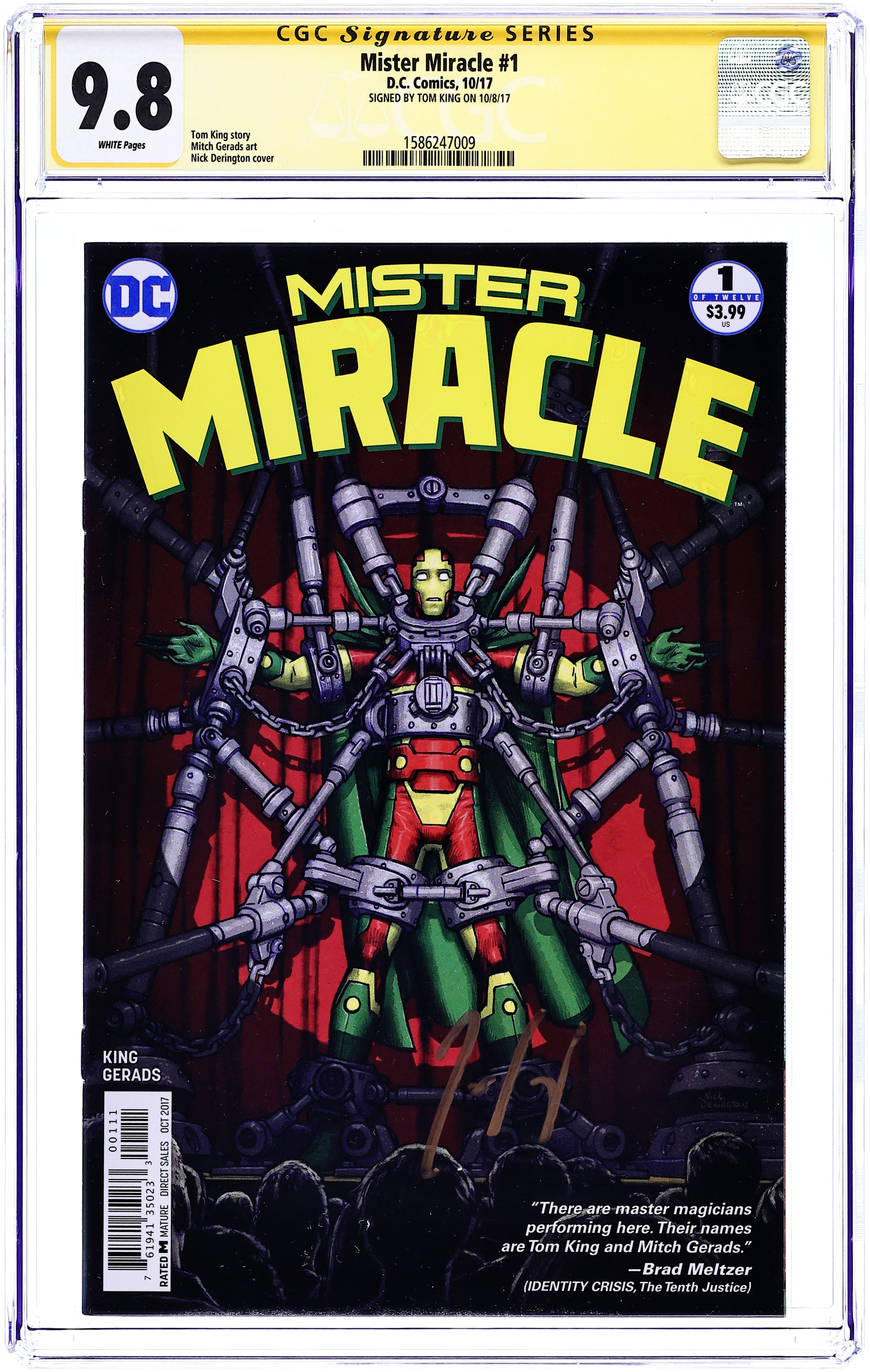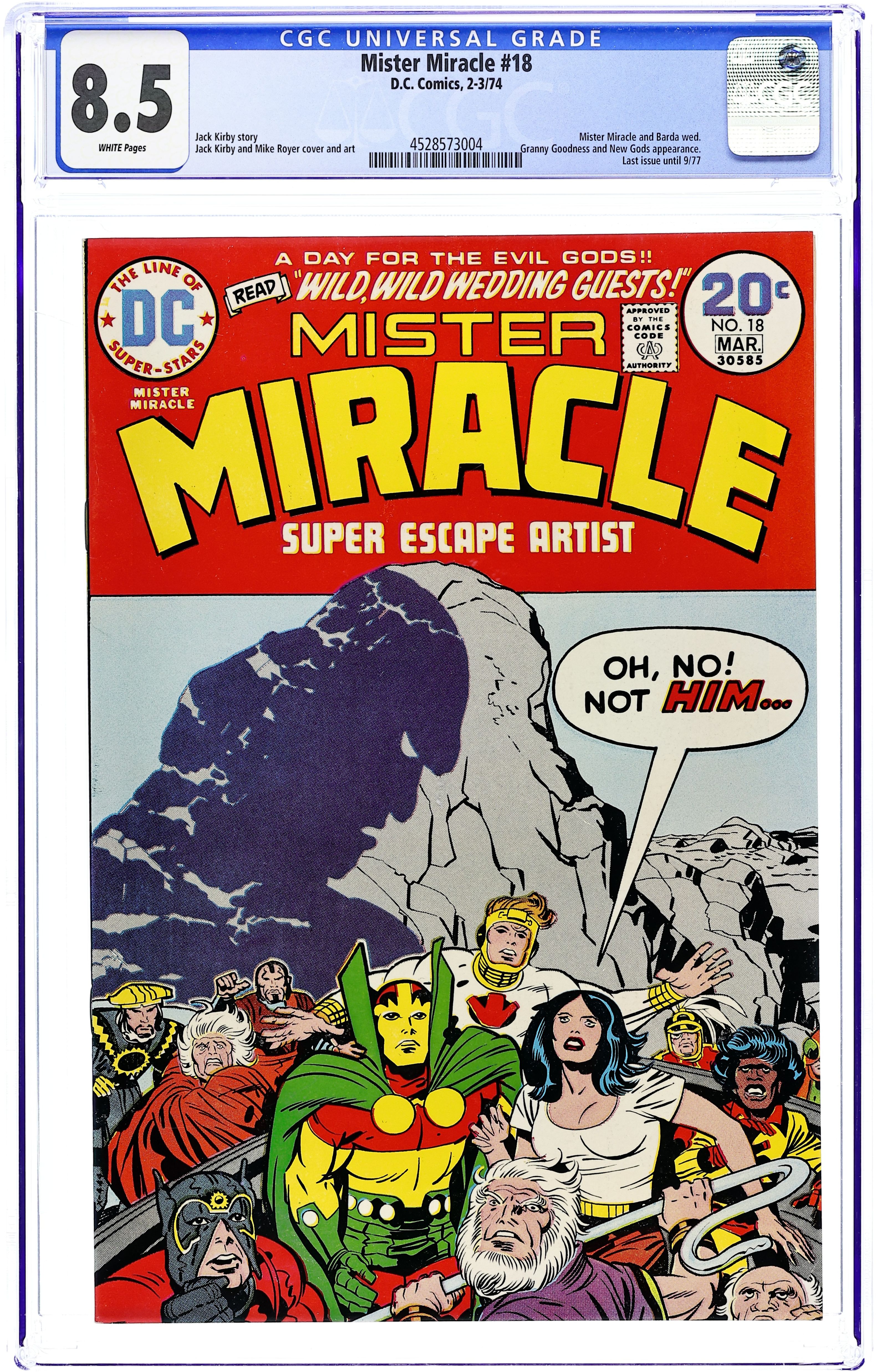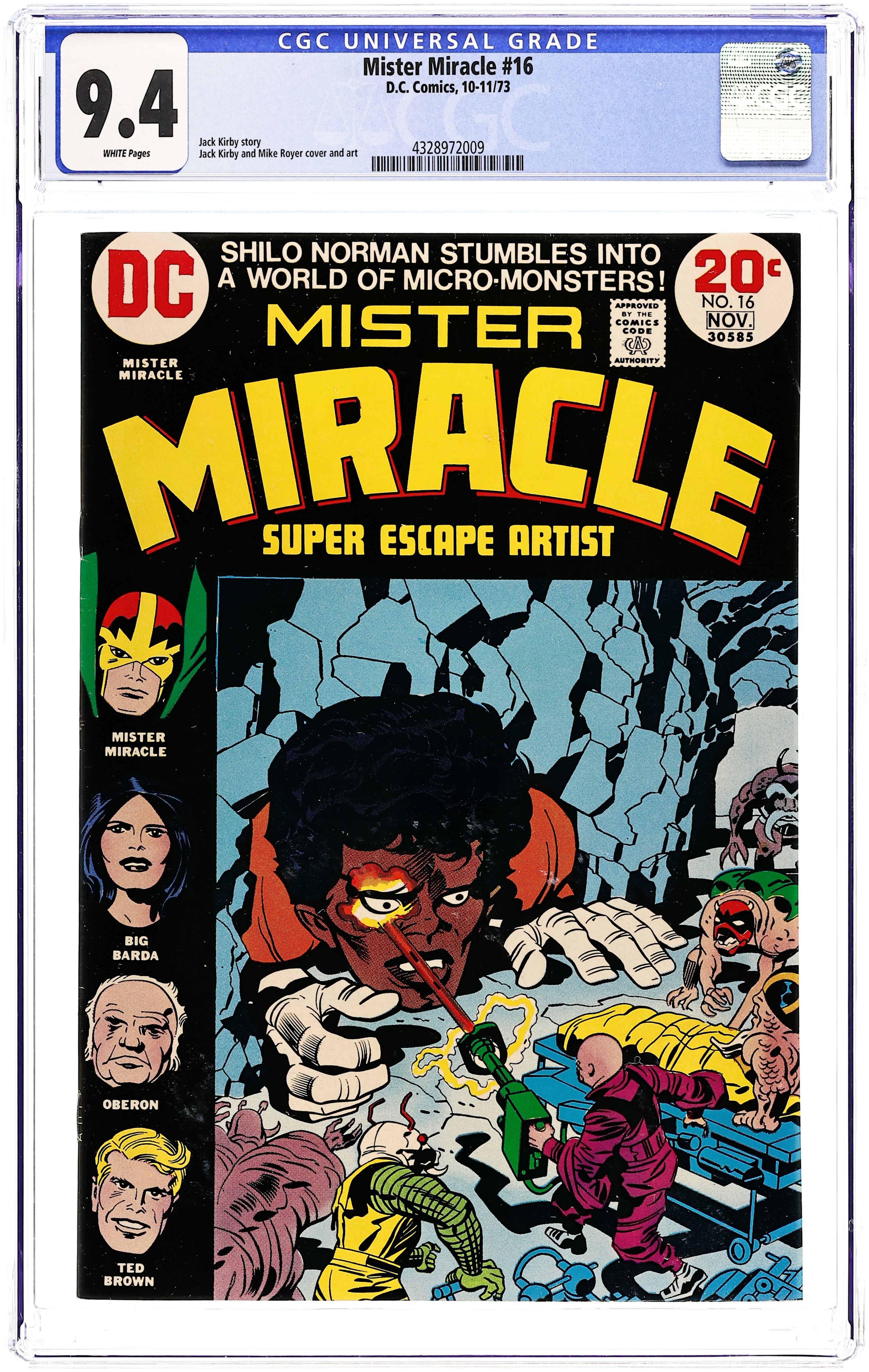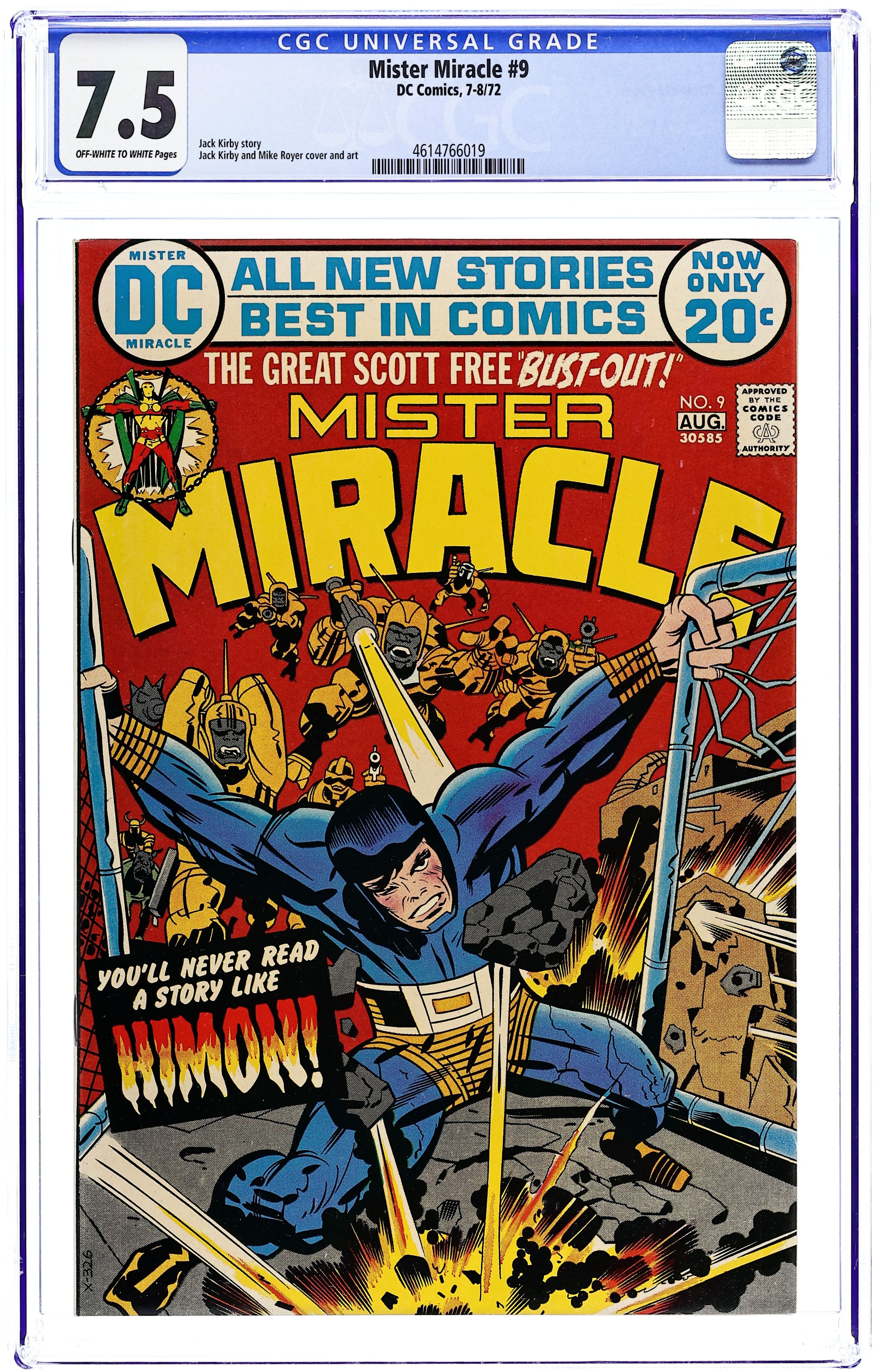 "Himon." This widely praised issue features the origin story of Scott "Mister Miracle" Free and introduces Himon, who helps Free escape from Apokolips. Includes Darkseid cameo. Script, pencils, and cover by Jack Kirby. Inks by Mike Royer. Cover price $0.20.