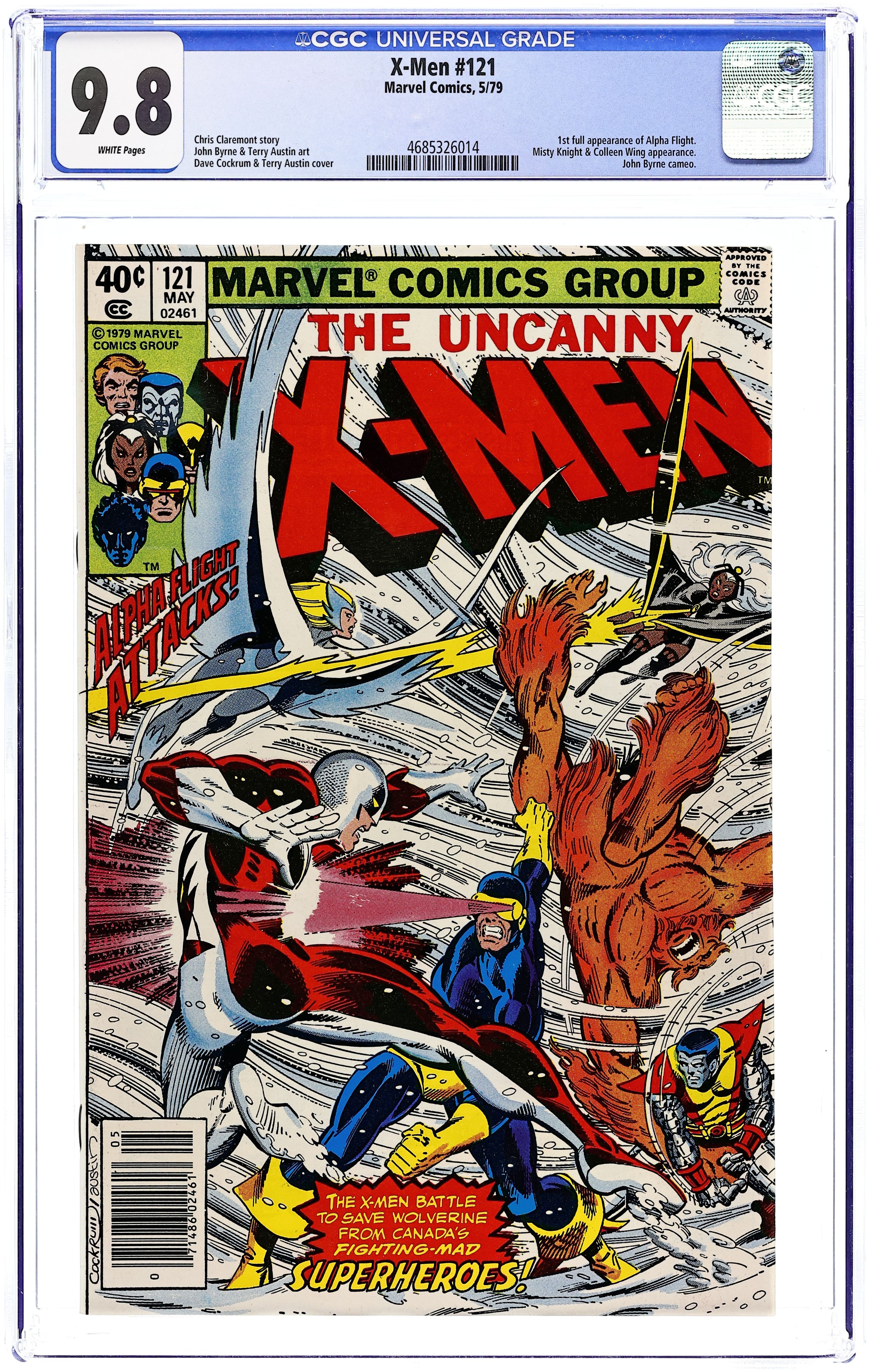 "Shoot-Out at the Stampede!" Part 2 of 2. Guest-starring Alpha Flight (1st full appearance). Story by Chris Claremont and John Byrne. Art by John Byrne and Terry Austin. It's no holds barred super-hero tussle as the Uncanny X-Men square off with Canada's premier super-hero team, Alpha Flight. And hanging in the balance, the fate of Wolverine. NOTE: 1st full appearance of Shaman, Aurora, Northstar, Snowbird, and Sasquatch. 36 pgs. Cover price $0.40.