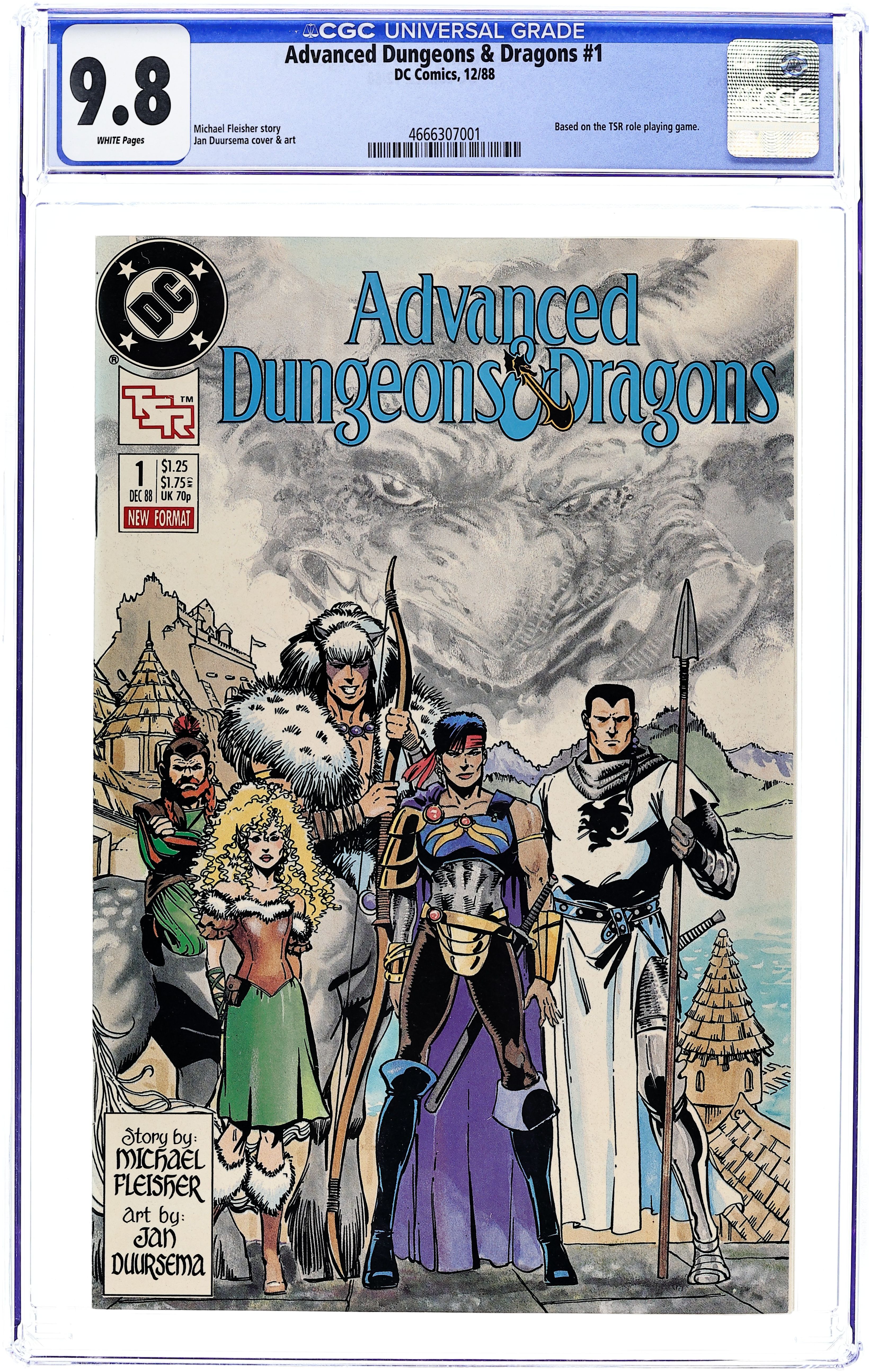 Direct Edition. Based on the TSR role playing game - "The Gathering!" Part 1 of 4. Story by Michael Fleisher and Jan Duursema. Art by Jan Duursema. An ancient evil rises and once again threatens the Realms. Only a motley band of adventurers can stop it now. A surly dwarf warrior and his benevolent centaur companion, a gladiator who survived the Manshaka Arena of Blood, a fallen paladin, and a timid half-elf must somehow find a way to work together if the Realms are going to survive the coming darkness. Includes character sheets and information (to be used for the TSR Dungeons & Dragons role-playing game) for the Guardsmen of Waterdeep, Character: Priam Agrivar, human paladin, and the Magic Item: Staff of Withering. Cover price $1.25.