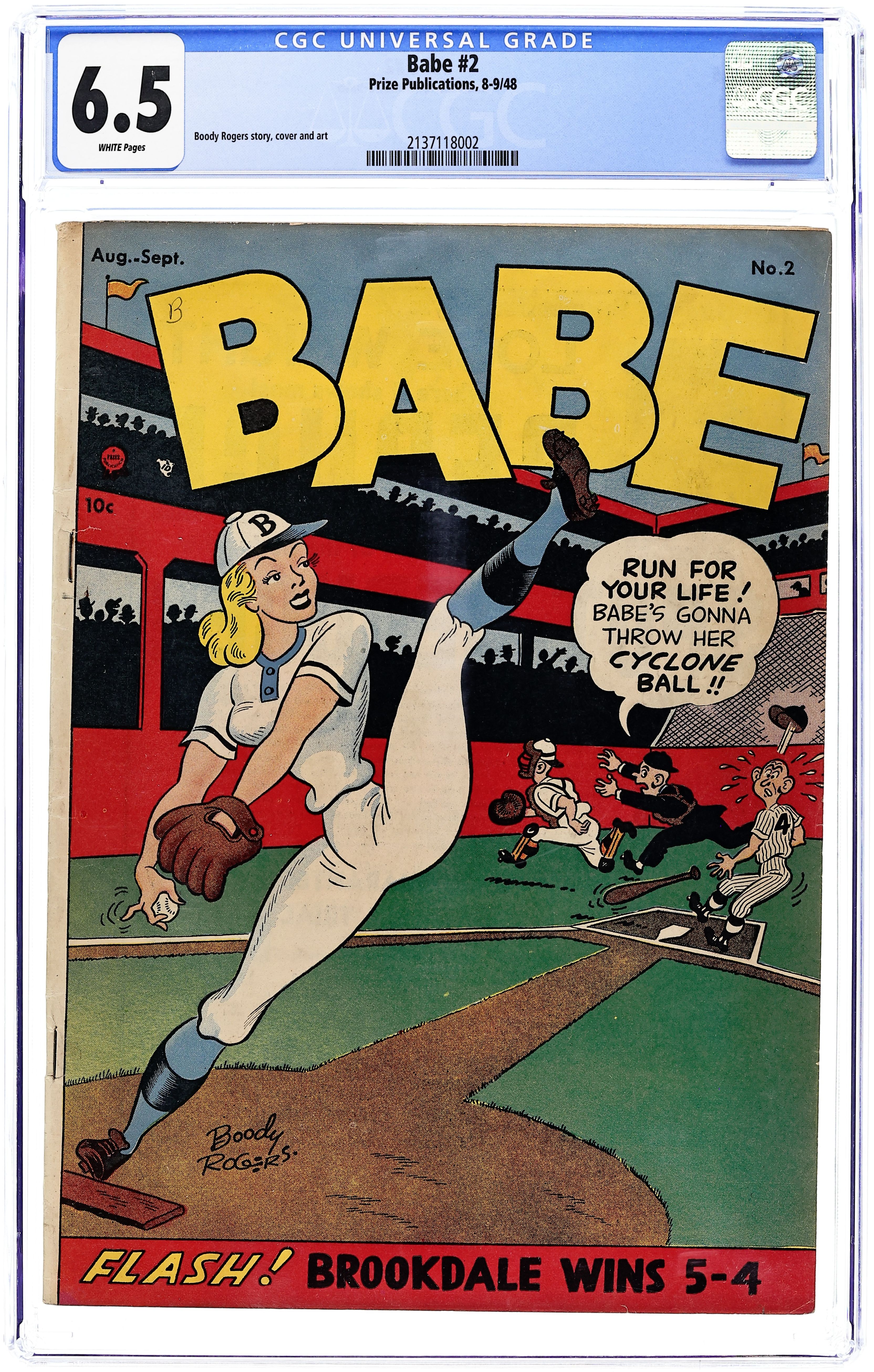 Hillbilly blonde Babe, an ace runner and baseball player, is ready for the big leagues, but the big leagues may not be ready for Babe. Story, art and cover by Boody Rogers. 52 pages. Cover price $0.10.