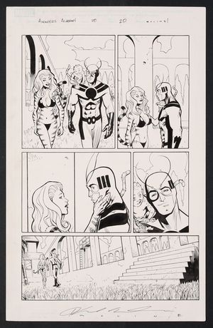 Original Art from Avengers Academy #28 (2012) Page 20 Pencils by Karl Moline, Inks by Jim Fern In auction ending January 14 from Avengers Academy (2010) 27 2012 Marvel A sweet final page highlighting the relationship between Hank Pym and Tigra that has a...complicated history thanks to the Skrulls! Signed by Moline in lower margin. Pencil and ink on Marvel Comics art board. 11" x 17 1/4". |