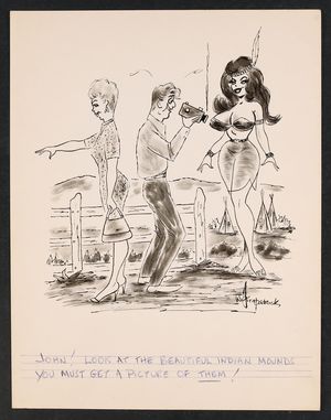 Original Art Pinup Indian Mounds Gag Strip by Walter Fitzpatrick 1950s While the place of publication for this piece is unknown, Fitzpatrick was a prolific cartoonist contributing mainly to various Humorama publications like Jest and Gaze in the 50's and early 60's. Signed by the artist. Pencil and ink on heavy paper stock. 8 1/2" x 11". |