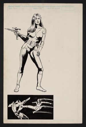 Original Art Unpublished Alpha Flight Story (c. Early 90's) Page 1 Pencils by June Brigman, Inks by Bruce Patterson In auction ending January 14 1990s Marvel A fantastic title page splash for this unpublished inventory story with a great image of Heather Hudson, Vindicator, standing tall as she coordinates rescue efforts in the wake of an avalanche. Brigman and Patterson do a neat trick here, slowly dropping detail from the image as the eye moves further 'back' into it, creating a great sense of focus on our hero. Pencil and ink on Marvel Comics Art board. 11" x 17 1/4". |