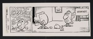 Original Art for the Mother Goose and Grimm Comic Strip (6/12/1994) by Mike Peters 1994 A great gag entry from this strip, that often took time away from its central characters to tell a good joke! Pencil and ink on art board. 6 1/4" x 16 1/4". NOTE: The first panel is on a separate piece of board from the rest of the strip and is affixed to the rest of the strip with glue. |