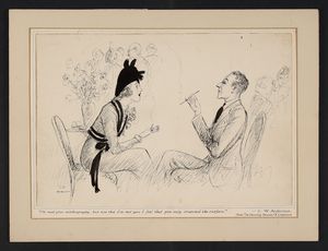 Original Cartoon Art from The Saturday Review of Literature by C.W. Anderson 1934 Signed by the artist. Ink on paper which has been matted. NOTE: The tope layer of matting is loose and mostly detached from the rest of the piece. 12 1/8" x 16 1/8". |