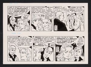 Original Art for the Mary Worth Comic Strip (3/10/1990) by Bill Ziegler 1990 Pencil and ink on art board. 5 1/2" x 16 1/2". |