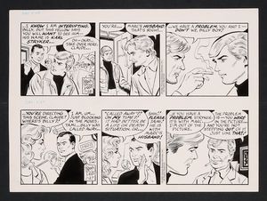 Original Art for the Mary Worth Comic Strip (3/17/1990) by Bill Ziegler & Jim Armstron 1990 Pencil and ink on art board. 5 1/2" x 16 1/2". |