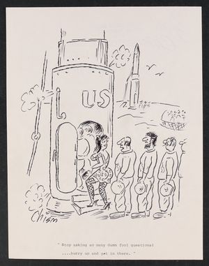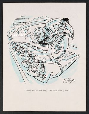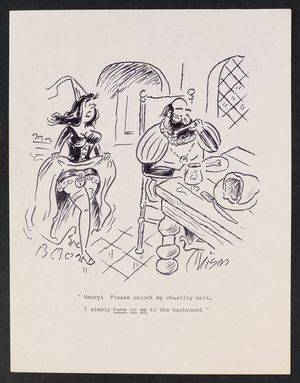 Something With Less Action Gag Strip by Jack Chism 1970s Chism was a prolific cartoonist, contributing mainly to Charlton's compilations including Good Humor and Cartoon Carnival. Signed by the artist. Pencil and ink on paper with a custom stamp from Chism on the reverse. 8 1/2" x 11" |