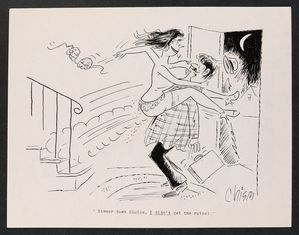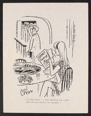 Simmer Down Gag Strip by Jack Chism 1970s Chism was a prolific cartoonist, contributing mainly to Charlton's compilations including Good Humor and Cartoon Carnival. Signed by the artist. Pencil and ink on paper with a custom stamp from Chism on the reverse. 8 1/2" x 11" |