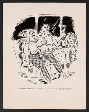 Surprise, Wendal! Gag Strip by Jack Chism 1970s Chism was a prolific cartoonist, contributing mainly to Charlton's compilations including Good Humor and Cartoon Carnival. Signed by the artist. Pencil and ink on paper with a custom stamp from Chism on the reverse. 8 1/2" x 11" |