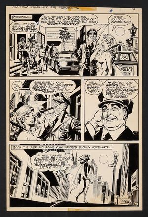 Original Art from Detective Comics #417 (1971) Page 30 Pencils and Inks by Don Heck In auction ending January 14 from Detective Comics (1937 1st Series) 417 1971 DC A beautifully drawn page that also happens to be a crucial moment in Bat-lore from the great Don Heck! After Batgirl aids an overwhelmed Commissioner Gordon in taking down a group of cop-killing radicals (who were themselves being set up by the mob!), all that's left is for the two definitely-not-related crimefighters to head home. Heck's inking is outstanding here, especially in the close shot of Gordon's face in the the third panel. The most notable thing about this page however is that it reveals that Gordon, through some deductive reasoning worthy of the Dark Knight, has known for a while now that his daughter is Batgirl. Pencil and ink on art board. 10 1/2" x 16". |