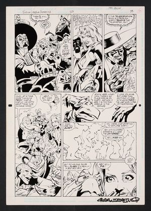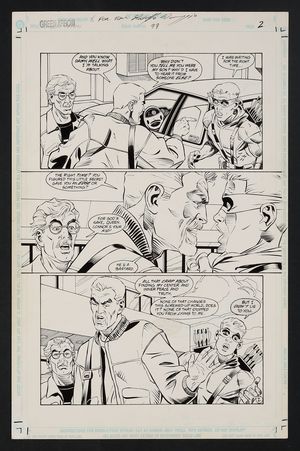 Original Art from Batman Grendel II #1 (1996) Page 7 by Matt Wagner In auction ending January 14 from Batman Grendel II (1996) 1 1996 DC/Dark Horse One of the best visual storytellers in comics, Matt Wagner turns in a beautiful page for the inciting event for his creation's second crossover with the Dark Knight! The Gotham City Museum is hosting an exhibit dedicated to the many villains who have plagued the city over the decades and the centerpiece is the skull of Hunter Rose, the original Grendel. With mobs of protestors gathered outside, Commissioner Gordon and the GCPD are out to keep the peace- though they might need some assistance if say, an enhanced assassin from the future chooses this moment and place to travel back in time! Signed by the artist in lower margin. Pencil and ink on DC Comics art board. 11" x 17". |