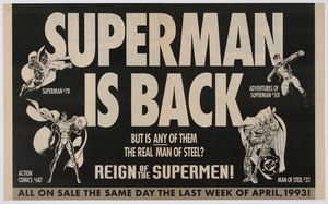 Reign of the Supermen Promotional Poster 1990s DC High quality print on paper stock. Poste is folded as originally issued. 21 1/2" X 13". |
