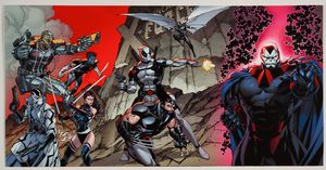 Uncanny X-Force Connecting Cover Print by Scott Williams In auction ending December 19 2020s Features the full image of the connecting covers commissioned by IG Comic Store for Powers of X #2, Marvel Comics #1000, and Marvel Comics #1001. High quality print on photo stock. 33" x 16 3/4", full color. Note: Print will be rolled. |