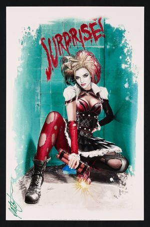 Harley Quinn Suprise Print by Natali Sanders 2020s Signed by the artist with foil stamped seal. High quality print on heavy stock. 11" x 17" |
