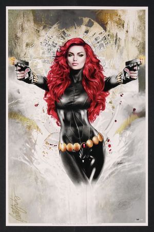 Black Widow Print by Natali Sanders In auction ending December 26 2020s Signed by the artist with holofoil seal and numbered 34/50. High quality print on heavy stock. 11" x 17". |