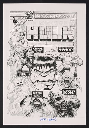 Incredible Hulk Annual #5 Cover Recreation and Expansion Print by Art Adams In auction ending December 8 2020s Signed by the artist. High quality print on heavy stock. 13" x 19". |