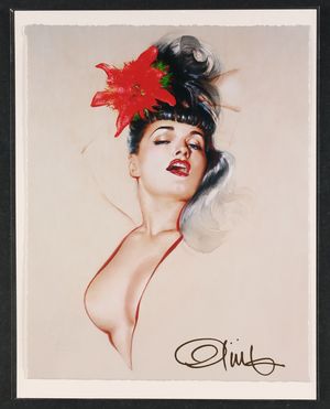 Wild Orchid Variant (Bettie Page) Print by Olivia de Berandinis In auction ending December 19 2025 Signed by the artist. High quality giclée print on 100% rag paper. Includes certificate of authenticity from Ozone Productions. 8" x 10". |