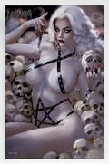 Starts Jan 19 Premium Foil Edition Cover by Adam Hughes. Written by Brian Pulido and Mike MacLean. Art by Dheeraj Verma and Sabine Rich. To save her beloved steed Vassago from eternal torment, Lady Death is drawn the wasteland City Siduri where lust isn't a sin, it is a way of life. Instead she encounters the demon sorceress Demonika, is put under an ironclad spell and made to be a plaything to be auctioned off to the highest demon bidder. Is all hope lost? C'mon, it's Lady Death! Lady Death: Oblivion Kiss #1 is a 48-page all-new square bound graphic novel that builds on the mythology creator Brian Pulido has began in Chaos Rules #1, Damnation Game #1, and Oblivion Kiss #1. 48 pages, full color. Mature Readers Cover price $40.00.