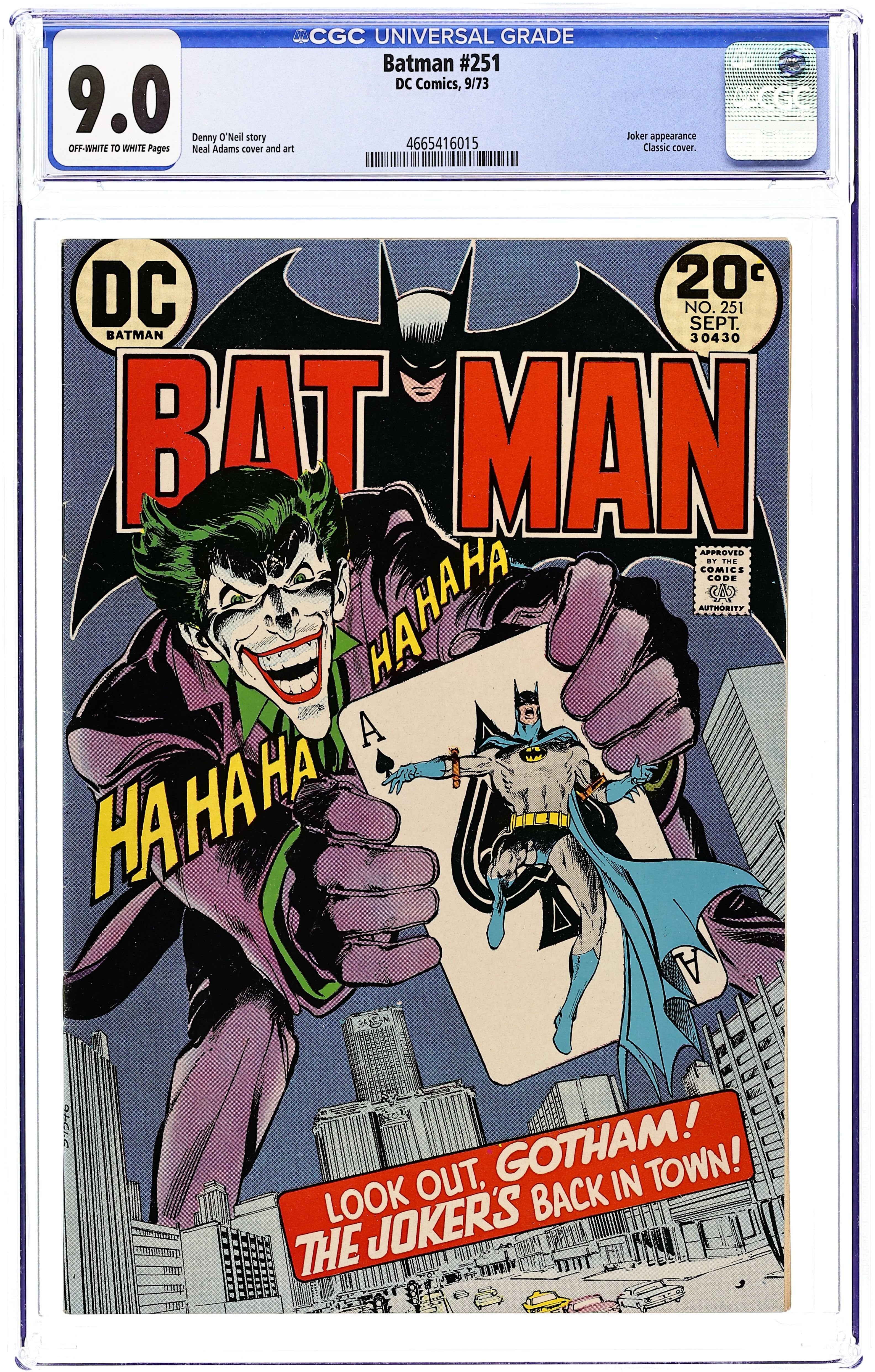 Ends Apr 14 7:50 PM CST Bid History 10 bids Current Bid $405 Your Secret Max Bid If you'd like to bid, please log in or register. Cover art by Neal Adams. "The Joker's Five-Way Revenge!", script by Denny O'Neil, art by Neal Adams; The Joker has set himself free from the Mental Hospital for the Criminally Insane Batman had him incarcerated in, and he is out for blood; Before he was sent away, knowing that one member of his previous gang had ratted him out to the police, he had vowed to murder all five of them; And only the Batman is capable of stopping him; Despite Batman's best efforts, the Joker is able to finish off nearly all of his hit list; Batman is only alerted after the first murder, when a grinning corpse is found in the mud just outside of Gotham City, and he goes to each of the former members of the Joker's gang individually to try to protect them. Plop! comic book ad. Champion Sports comic book ad. 36 Pages, Full Color. Cover price $0.20.