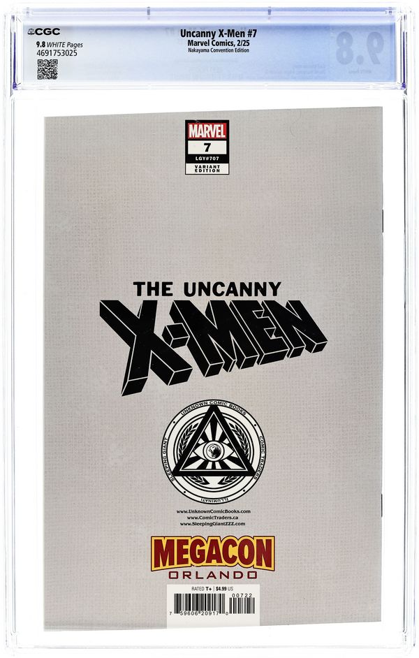 Comics Illuminati (Unknown Comics, Comic Traders, and Sleeping Giant) Megacon Orlando Exclusive Foil Virgin Cover by David Nakayama. Written by Gail Simone. Art by David Marquez. "RAID ON GRAYMALKIN" Part TWO! THE GRAYMALKIN RAID CONTINUES as two conflicting teams of X-Men come to a crossroads at Graymalkin Prison, formerly Xavier's Institute! As if the Perimeter protocols and the prison's mutant TRUSTEES weren't enough, team leaders ROGUE and CYCLOPS find themselves at war over the uncertain legacy of Charles Xavier! 32 pages, full color. Rated T+ Cover price $4.99.